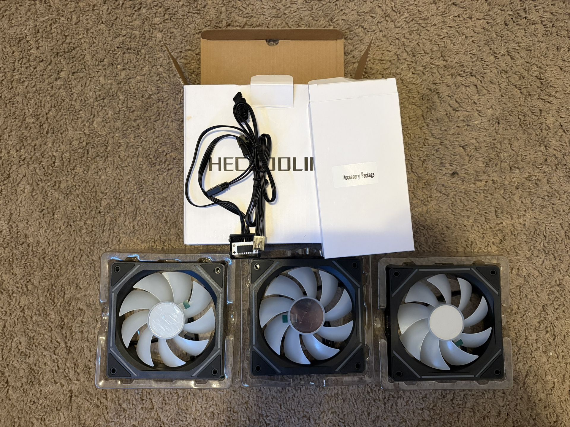 x3 ARGB Fans Never used; still have the peel able sticker. Fans are connected and linkable.