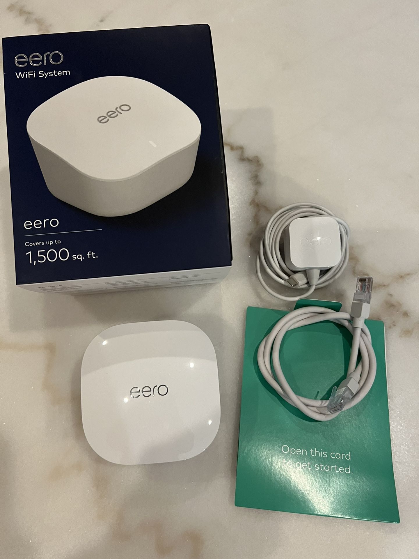 Good working condition. Fast standalone router - The eero mesh WiFi router brings up to 1,500 sq. ft. of fast, reliable WiFi to your home. Works with Alexa device (not included) you can easily manage WiFi access for devices and individuals in the home. Easily expand your system - With cross-compatible hardware, you can add eero products as your needs change. Works with your internet service provider - Eero connects to your modem to bring your existing internet connection to every corner of your home. Set up in minutes - The eero app walks you through setup in less than 10 minutes and allows you to manage your network from anywhere.