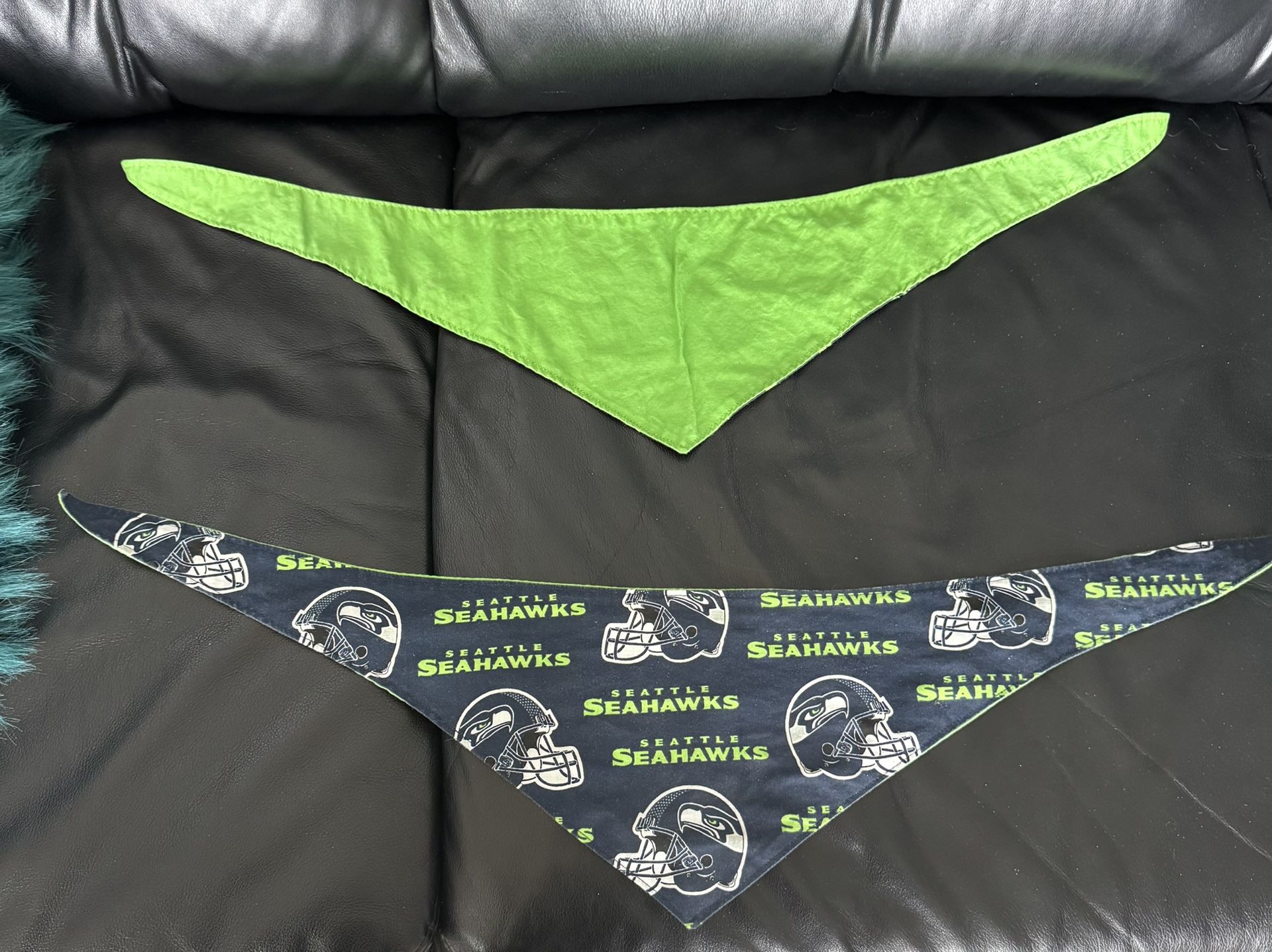 Two sided Seahawks bandanas Reversible for humans or pets The price is for both Measurements in photos Located about 10 minutes from Lacey Cabelas Porch pickup Please no messages from 9pm to 7am Thank you and Go Hawks πππππππππππππ