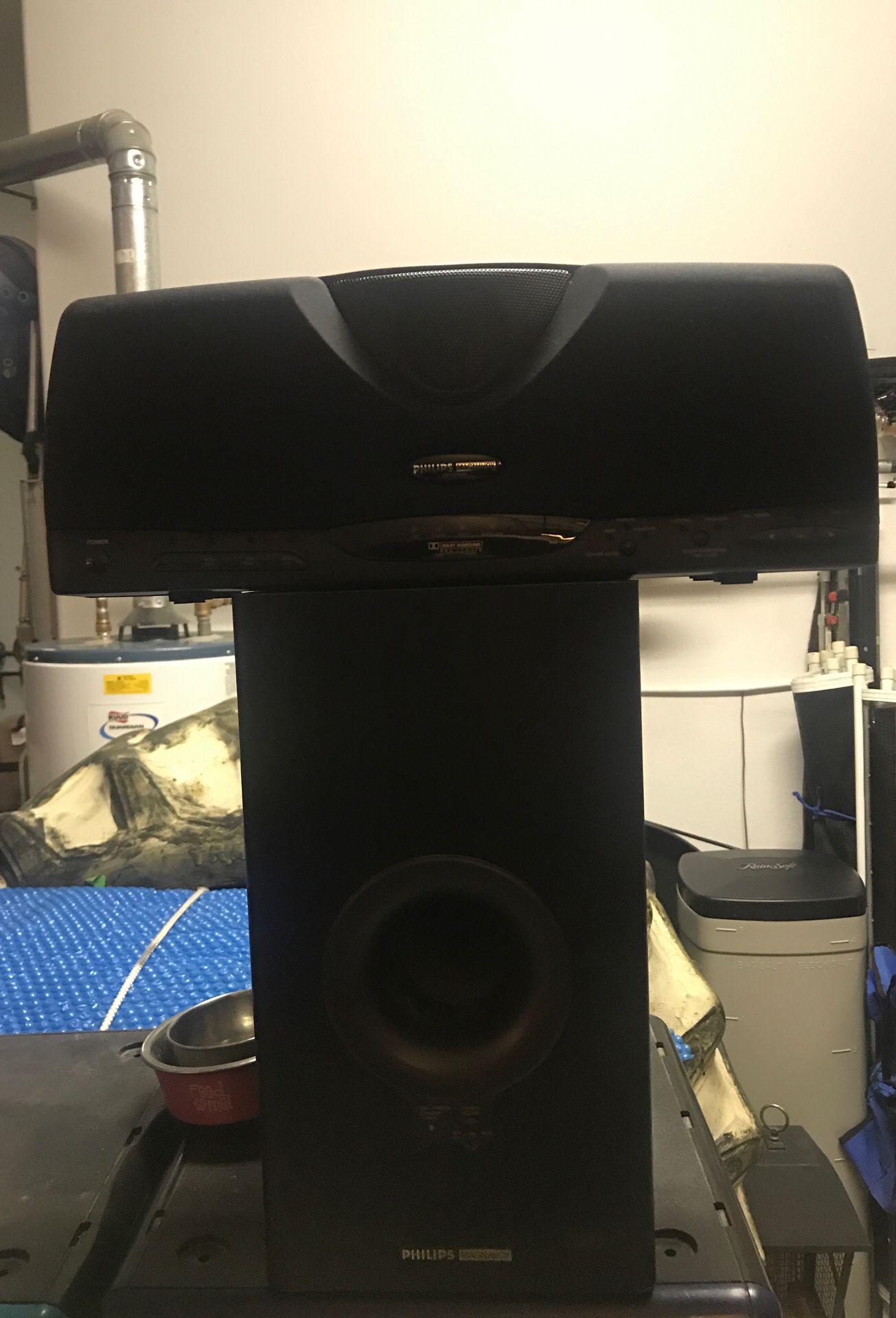 Model number MX900/37 on the Dolby Pro logic box and model number PV98SW on the subwoofer