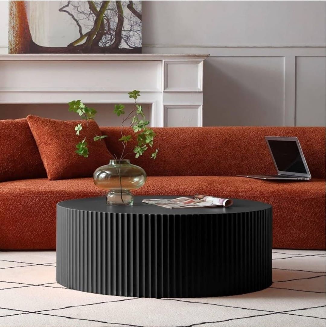 Black Round Drum Coffee Tables for Living Room Contemporary Circle Coffee Table, Modern Wood Accent Table for Office Apartment