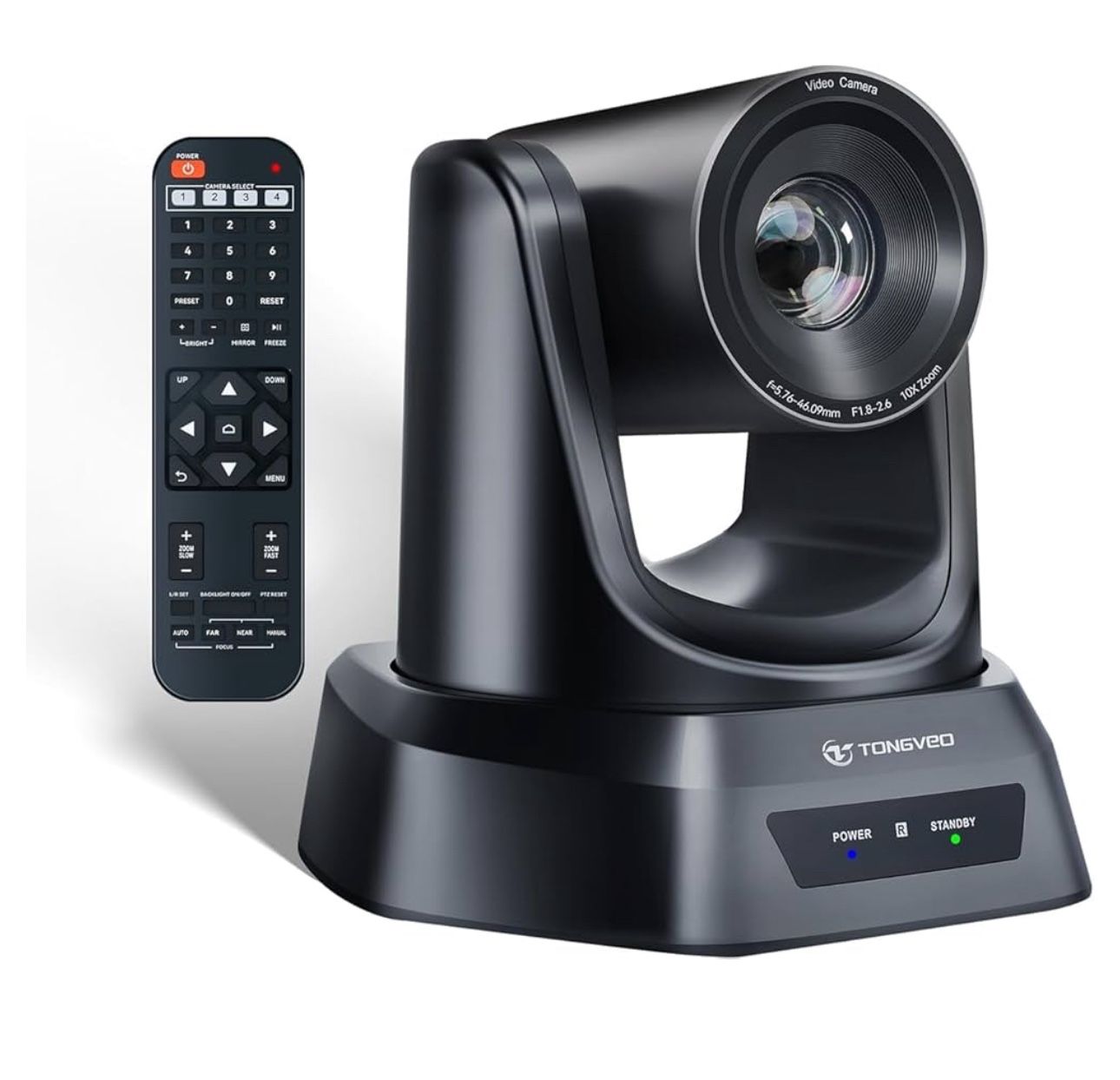 ✔HDMI + USB3.0 Outputs - This TONGVEO 10X PTZ Camera has HDMI and USB 3.0 video outputs which can output video simultaneously. Plug & Play HDMI and USB 2.0 port are available to connect to TV/monitor. Video Compression Format: YUV, MJPEG, H.264, makes church live or video conference more fluent and clear. Note: NO buit-in mic. ✔1080P 60fps 10X Optical Zoom - It is equipped with a 1/2.8 inch HD Color CMOS with 2.38 megapixel(16:9), Full HD 1080p output resolution and high dynamic image of 60fps. The superior 10x optical zoom lens has a wide angle FOV of 62.8°(W)-7.8°(T) without distortion, which has excellent white balance and exposure mode. The menu of the remote control can set picture parameters. Recommended for a Medium to Large church or meeting room. ✔Smooth and Quiet PTZ movement - The PTZ camera can rotate 350° horizontally (±175°) and 180° vertically (-90°~+90°). It can move into preset positions (10 presets via IR remote control, 255 via PELCO, 64 via VISCA) for a close-up sequence. One remote can control 4 ptz cameras. And the ptz camera has RS485 and RS232 interface which support joystick control. ✔Multi-compatibility and various Use occasions - Works with most video conferencing and live streaming software such as Zoom, Skype, OBS, Facebook Live, WebEx, polycom, Microsoft Lync and BlueJeans, etc. Supports Windows 7, Windows 8.1, Windows 10, Windows 11, Mac OS 10.10 and higher. Ideal for Video Conferencing, Church Livestream, Remote Meetings, Distance Education, Remote Consultation, etc.