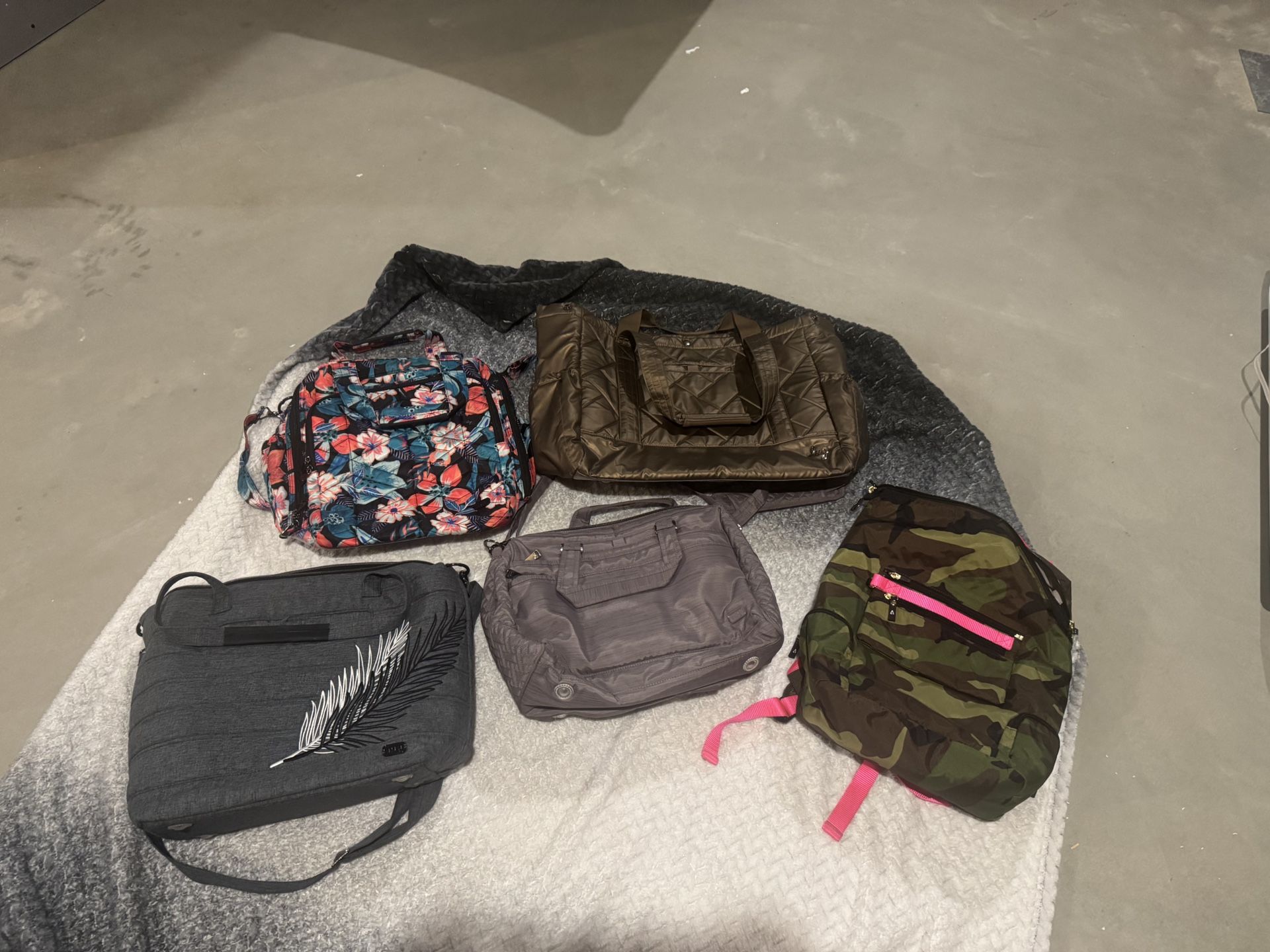 Top left: LUG ranger tote….$25.00 Top right: LUG rover xl tote….$75.00 Lower left and middle: LUG tote….$25.00 Lower right: Andi camo backpack….$40.00
