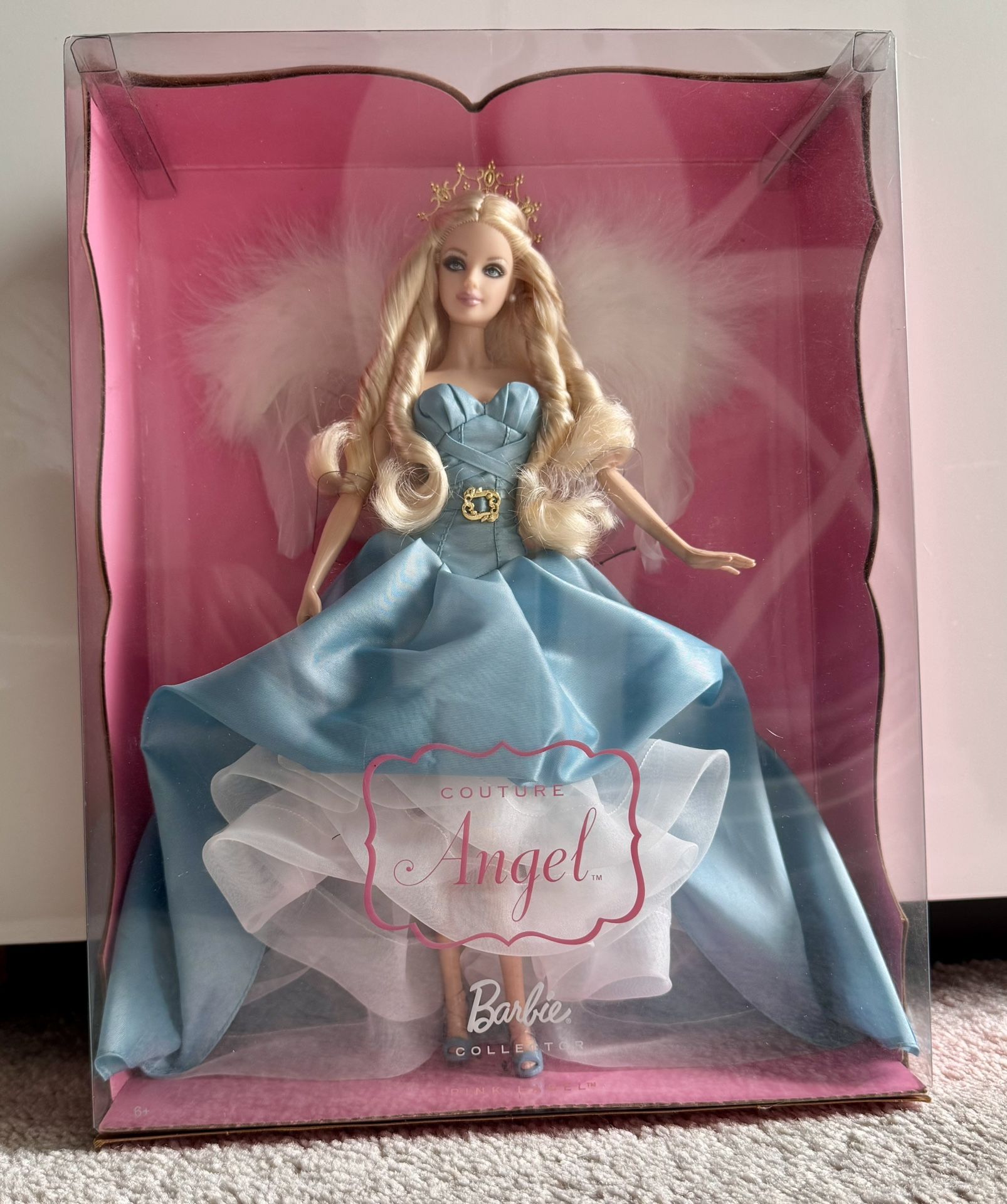 The Mattel 2010 Couture Angel Barbie Doll is a stunning fashion doll with a pink label, part of the Barbie Collector product line. This 12-inch doll features blonde curly hair, blue eyes, and a light complexion, embodying the fashion and beauty theme. Made of vinyl, cloth, and plastic, this original licensed reproduction from 2010 is designed for all occasions and appeals to collectors and fans of the Barbie franchise. Perfect for teens, adults, and youth, this Barbie doll is a timeless piece that captures the essence of the Pink Label series.