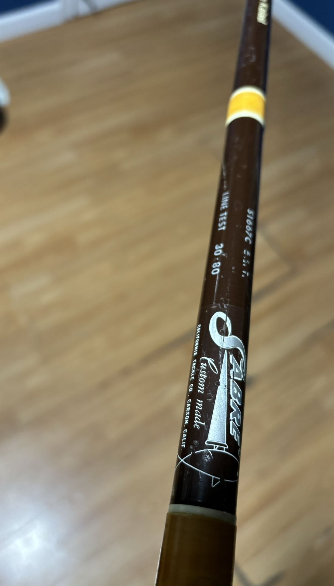 Sabre factory chocolate glass, full length 6’7 solid 40-50lb rod, thick walls and pulls heavy, brand new grips - $60 Keywords Shimano , Trinidad , talica , Calcutta , bait runner , thunnus , united composite , graphite USA , Newell , truline , tady , salas , seeker , cal-star, accurate , power pro , owner , phenix , ulua , avet , Penn , torium, fishing , fish , reel , rod , pole , okuma , Daiwa , roddy , silaflex , Sabre