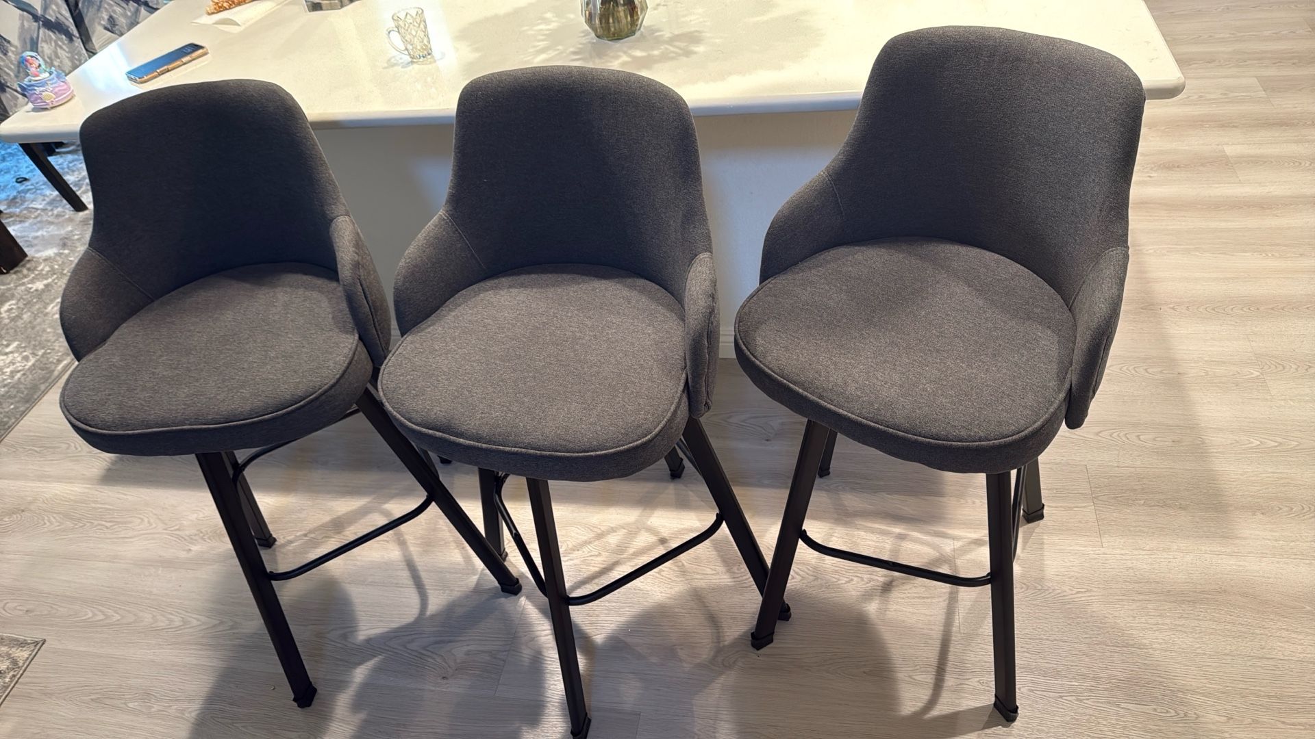 Gray Upholstered Swivel Counter Height, Stools