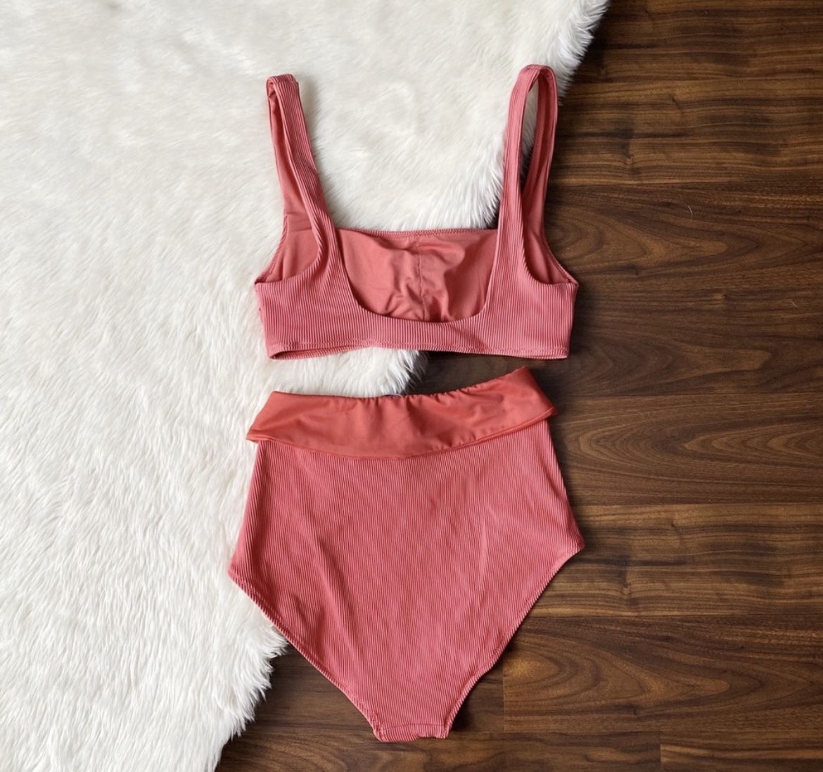 Aerie High Waist Bikini Set Salmon Pink Top size small Bottoms size small