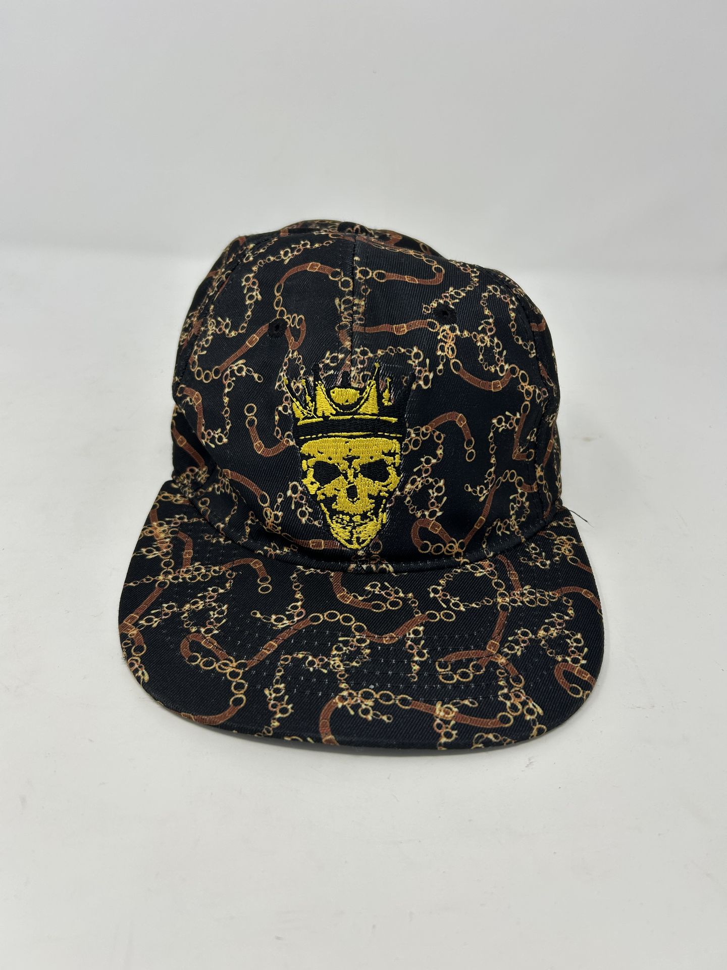 Ace Cap Inc Skull Crown Snapback Hat Black Chain Print Flat Brim Adjustable