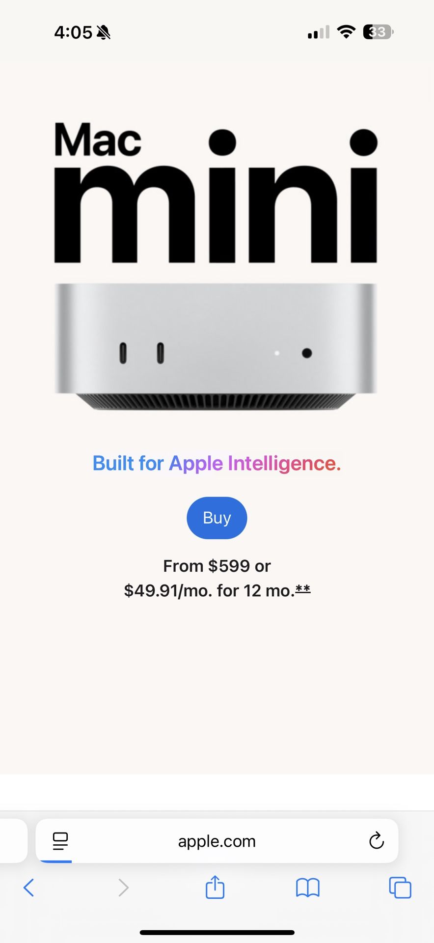 Purchased this Mac mini this year 2025 but I'm On the go too much so I need a laptop .im selling the following items as a bundle or seperate Mac Mini M4 27 in Apple monitor Apple key board Apple mouse I'm letting them go at a steal of a price Must be able to pick up other wise there is an additional charge for the shipping fees . Thank u