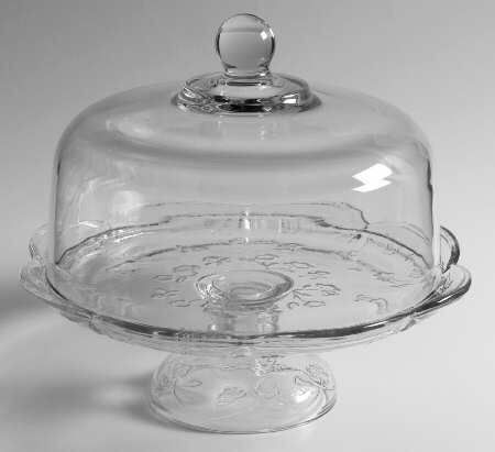 Circa 1980s Anchor Hocking Savanah Pattern - various pieces as listed below with minimal signs of use. -cake plate with glass dome $30 -chip and dip set $20 (turn upside down for pedestal cake/dessert plate) -oval covered casserole (2 quart) $5 (small chip on lid that fits inside casserole) -quiche 10 inch $15