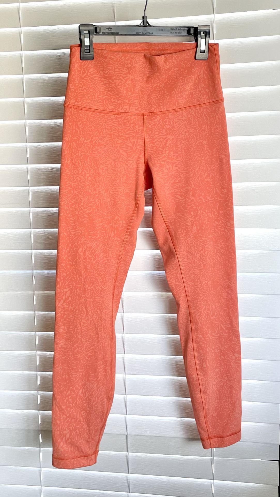 * As Photoed/As Is * You Are Purchasing a PRE-OWNED Item * Smoke Free & Pet Free Home Waist - 23 inches (unstretched) Rise - 10 inches Inseam - 24 inches The product is a pair of Lululemon Wunder Under leggings in size 6, featuring a high-rise design for yoga. The leggings are in a coral color with a pull-on closure and a blended fabric made of polyester and elastane. They have an athletic fit with a 24-inch inseam and various features such as compression, moisture-wicking, lightweight, and breathable. The leggings are suitable for various activities like yoga, running, and pilates, making them a versatile addition to any activewear collection.