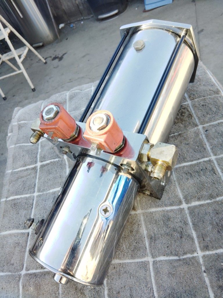 Got this old school red's hydraulic pump up for sale just put new seals #6 fennel stone pump head presto light motor it got around 75% life left on the motor built in dumps ready to go this would be perfect for a bomb or old school lowrider asking 350.