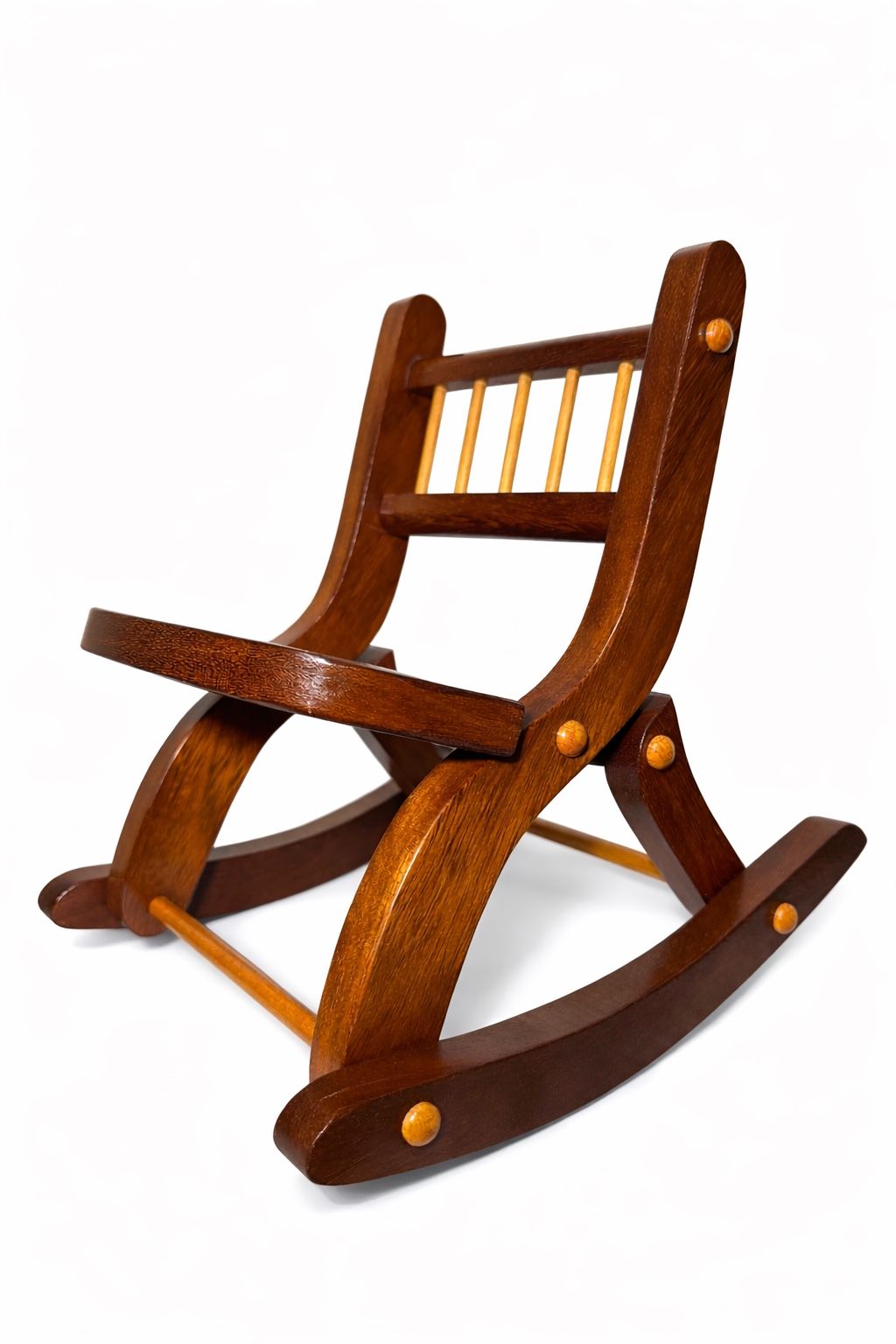 Vintage miniature wooden rocking chair for dolls. Solid wood. Folding design. Great for nursery decor, display, or collectors. Measurements shown in photos. Local pickup in Covington