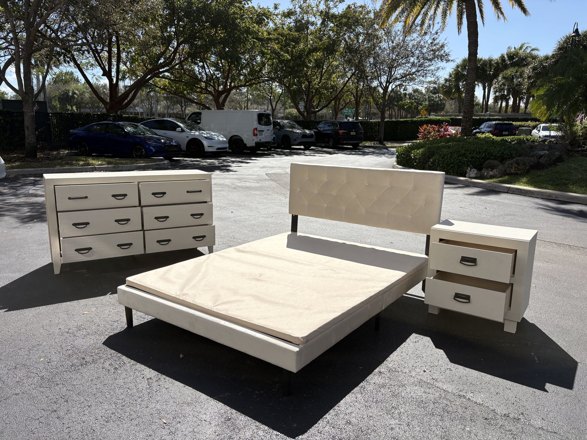 πDelivery Service Available Bedroom set by Brazil Furniture Price includes β 1 BED ( Headboard, footboard, side rails and support slats) Entire bed upholstered in suede! β 1 DRESSER WITHOUT MIRROR (6 Drawers) β 1 NIGHT STAND ( 2 Drawers) β 1 BOX PLATFORM A s you can see on pictures it has some signs of use but overall look great. Delivery available! Smoke free and pet free home. π visit our page below to view all items for sale!ππ