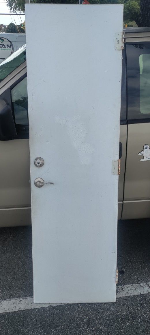 Exterior metal door smooth finish hurricane impact 23.75x79 see last photo a very minor bottom corner weathering issue