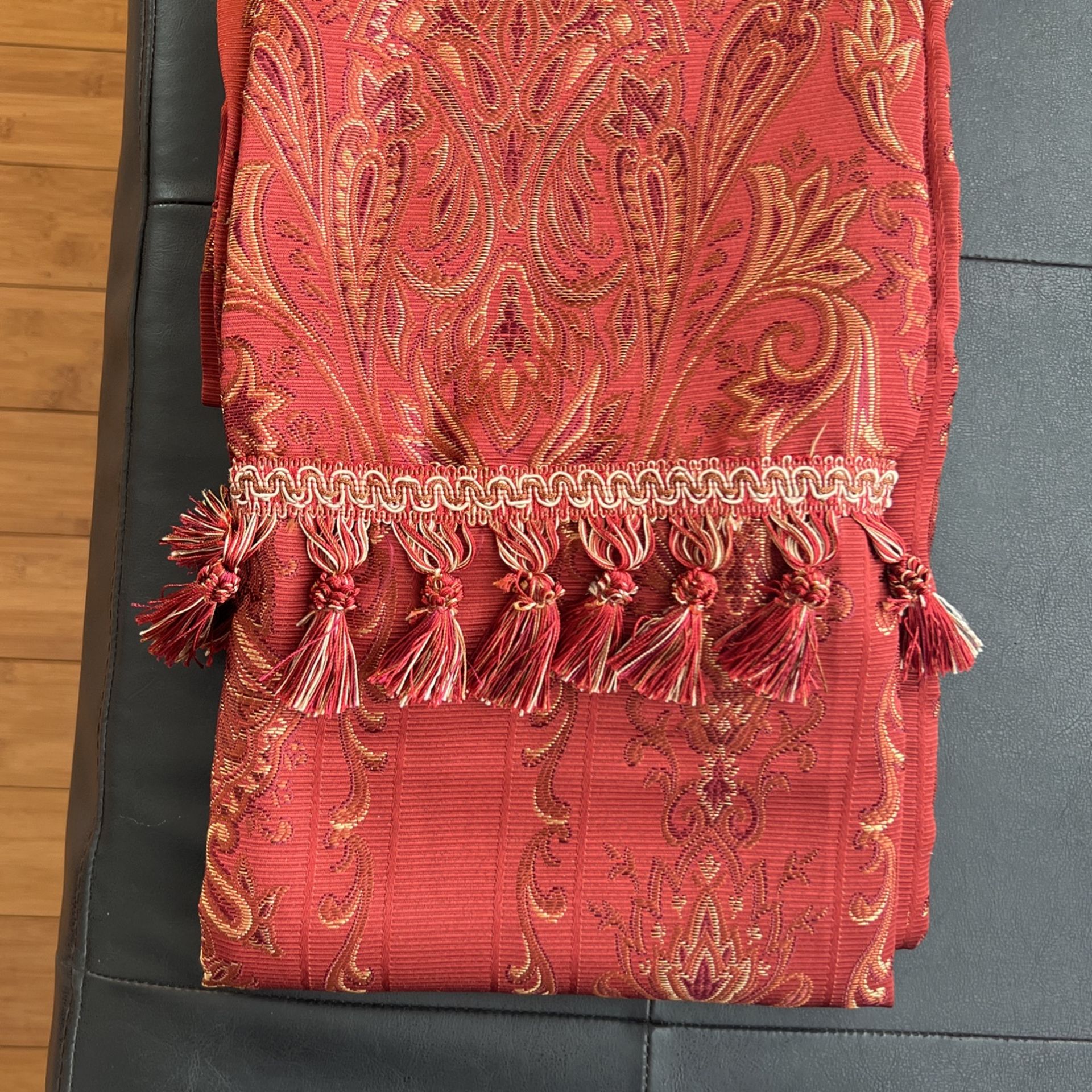 New only used for demonstration. Long Burgundy bathroom curtain. Very nice. Thick material. Folded put away.