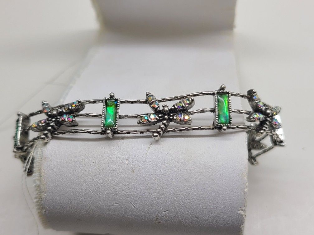 Spectacular rare green abalone shell bracelet. Base metal is pewter and contains no nickel. You can shower and swim with this piece. This is of the finest quality. There is an embargo on abalone; therefore this cannot be duplicated. One of a kind. The length is 7 1/4" and is accompanied with a 1" extension and a lobster claw clasp. Would look striking with any style outfit. Also a great gift π. From a smoke-free pet-free home. Please click on my profile to see all my other treasures. Thank you for looking and have a great day