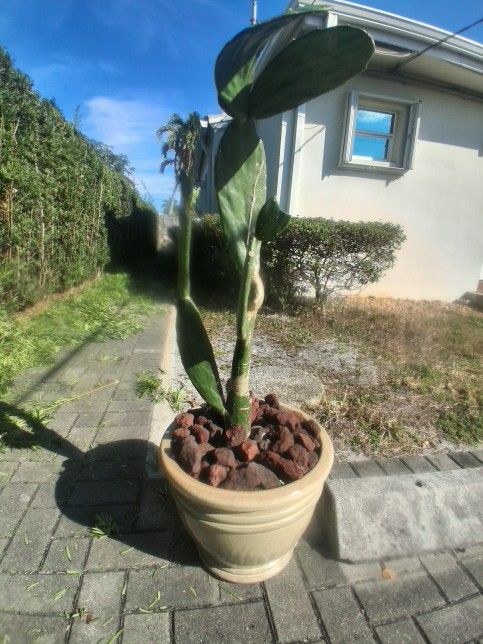 FIRE GLAZED TERRA COTTA PLANTER / ROCKS / SOIL / CACTUS PLANT
