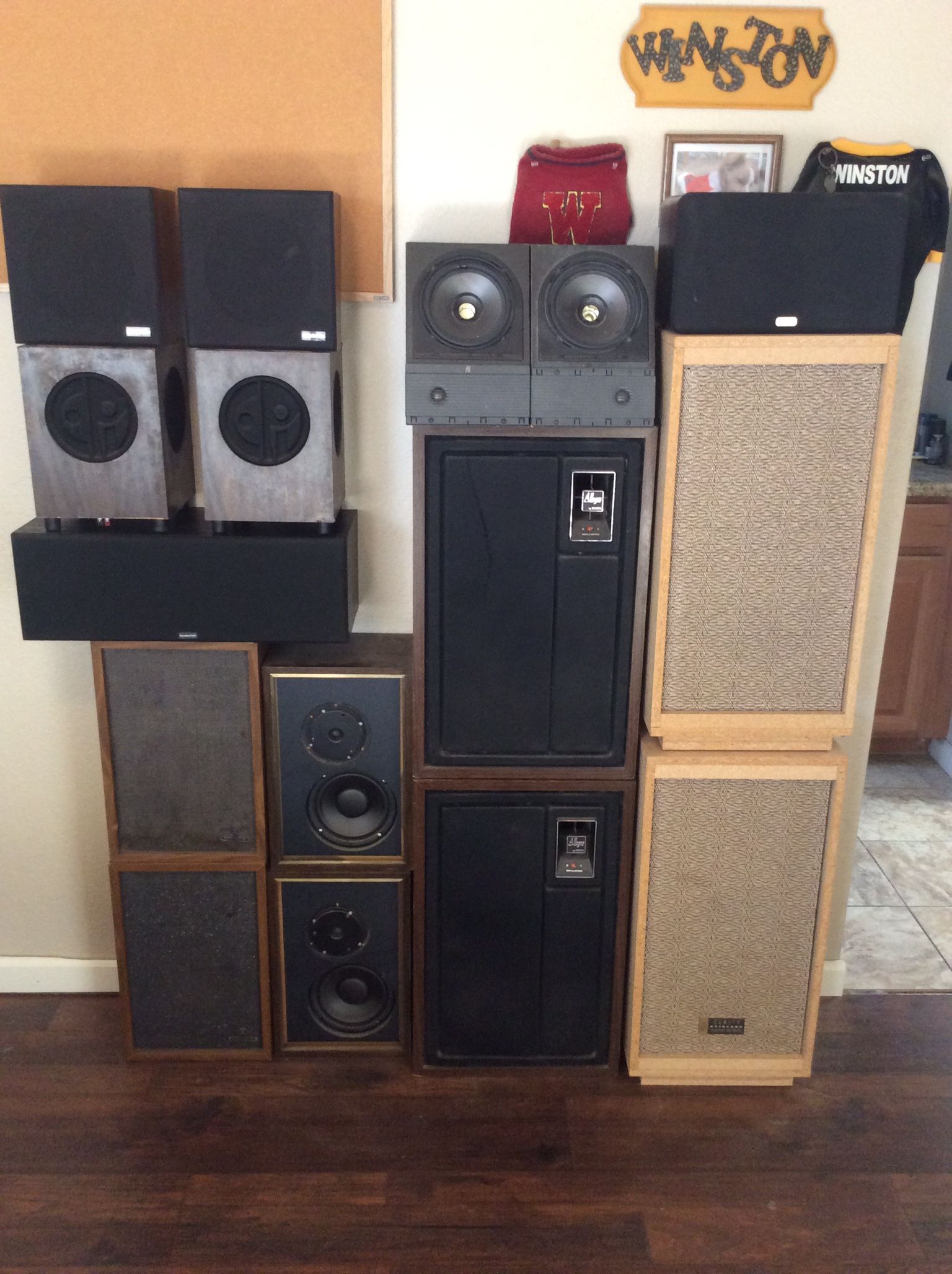 All tested and working. (except for the Zenith project speakers). Make an offer on any or all. Feeling very reasonable today. Going to keep it brief, so feel free to message me with any questions. Bogen 8” PA speakers. Might make good guitar speakers or somethin’. One-of-a-kind EPI cubes. Two 4” drivers in each cube, facing opposite directions. They make GREAT rear surrounds. No idea what the story is with these, but they don’t exist in the EPI catalog. Speakercraft center speaker. Sounds great. Vintage Grundigs. Still rocking. EPI Model 70 Frankenspeakers. Original tweeters replaced with VIFAs. They’re ugly but sound fantastic. AR M-1 Holograhic speakers. Also ugly but awesome. Zenith Allegros. Horn tweets, 10” woofers. No bad at all. TSW center speaker. Small, but heavy and well built. Zenith project speakers. Horn tweets and 8” woofers taken from an old Zenith console. Drivers are attached to grilles, boxes are handmade and of solid mdf. Needs crossovers and back panels for the cabinet. Will demo. Thanks, and check out my other offers.