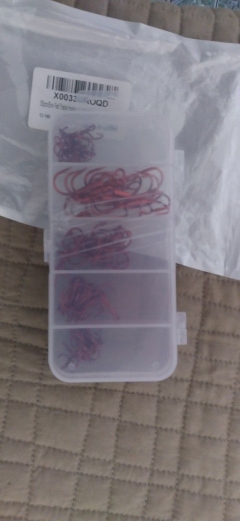 50 Pcs Red Fishing Hooks 5 Different Sizes