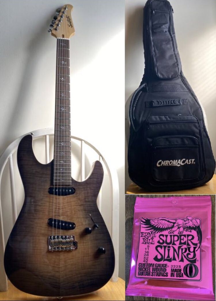 NEW guitar Sawtooth Natural series, includes the following accessories: - NEW Chroma Cast gig bag - Extra Ernie ball Super slinky strings set 250 dlls if guitar only