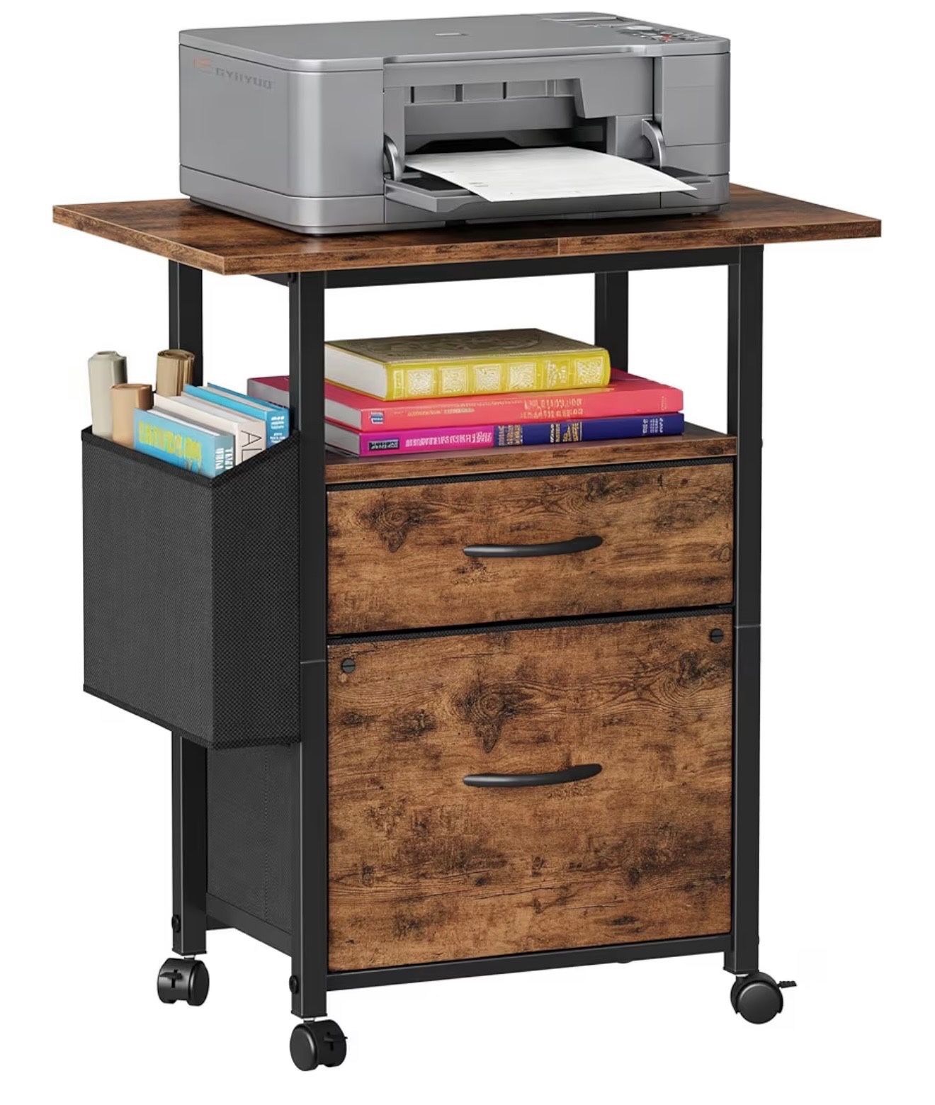 π Mobile File Cabinet with Printer Stand β Excellent Condition Modern and functional 2-drawer rolling file cabinet with a sturdy extended tabletop, perfect for holding a printer, scanner, or office supplies. Great for home offices, dorms, or small workspaces. Features: β’ Two spacious drawers for files & storage β’ Top surface fits a printer or workspace items β’ Smooth-rolling wheels for easy mobility β’ Side storage pocket for books or folders β’ Rustic brown wood finish with black metal frame β’ Compact but very sturdy design Condition: Gently used / Like new Price: $47 Pickup: Local pickup only (Fremont)