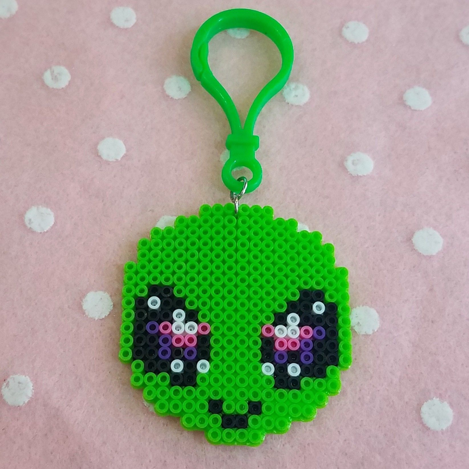 Handmade mini perler alien keychains. Eye colors can be customized to your liking. Perfect for keys, backpacks, or as a Christmas gift or last minute stocking stuffer. $3 each