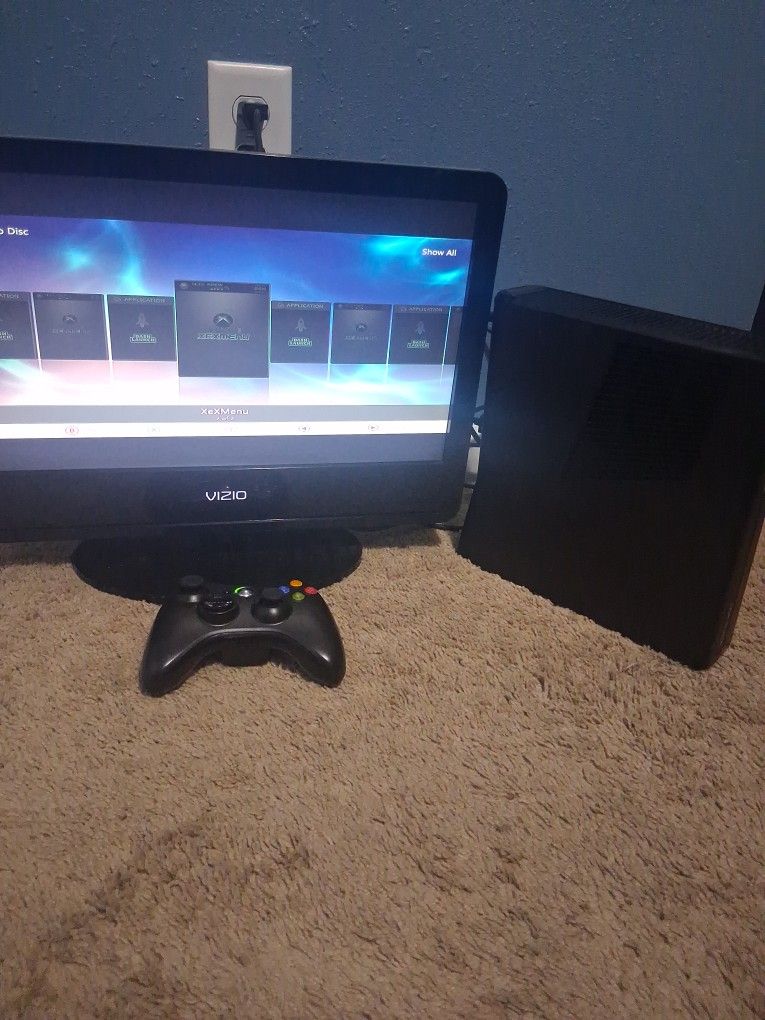 Modded Xbox Thats come with a 500gb Hdd with every cod that was released on the xbox 360 3 controllers