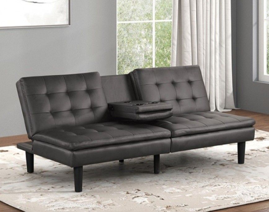 βπ« We do not have a showroom. We deliver directly from the manufacturer to your home π . π Delivery is only $40 π οΈ Assembly is an extra charge. Price on assembly depends on which item you order! π΅ We accept cash on delivery Mattresses are sold separately π₯We are voted #1 on offer up, please also view other options on our page!!! Beds, bedroom sets, sectional, sofas, daybed, futon, vanity, dining set, chairs, recliner, Loveseat, dresser, queen bed, king bed, desk, kitchen cabinets, shaker cabinet FM2908GY Contemporary Gray Leatherette, Foam, Engineered Wood, Other Converts to Bed Drop-down Table w/ Cup Holders USB-A & USB-C Charger Biscuit Tufting Seat & Back Futon Sofa Bed. 71.5"W X 35.5"D X 32"H