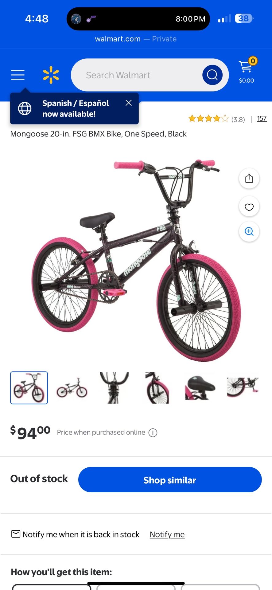 Please read The main picture is the original post of the bike is not brand new !! Needs some work…. Love and care …used let me know if you want to come Check it out …. Needs a break some cleaning handle grips kick stands kind of flimsy but works…. my daughter got an electric one and this is just sitting here. $5 bucks come grab it