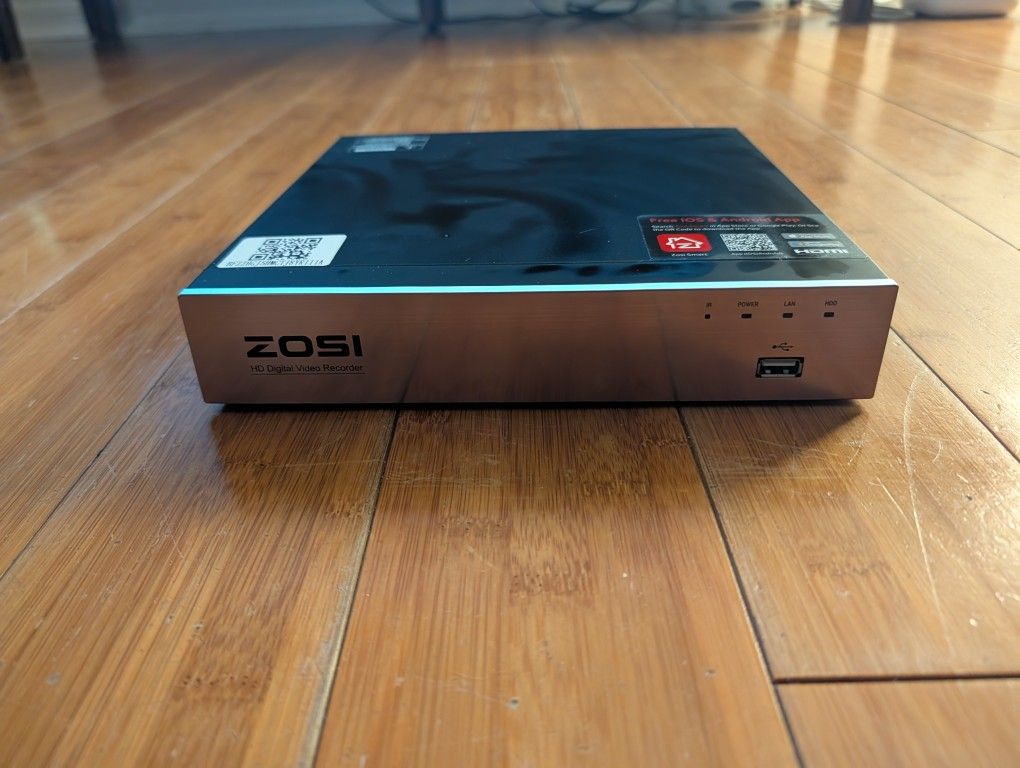 For sale is a Zosi HD Digital Video Recorder. This is the brain of a home or business security system, allowing you to connect multiple cameras for high-definition recording and remote viewing. Key Features: High Definition: Supports HD video recording for clear playback. Remote Access: Compatible with the Zosi Smart App (QR code on top) for viewing live footage on your phone. Front USB Port: Easy access for backing up footage or connecting a mouse. Status Indicators: Front panel LEDs for Power, LAN (Internet), and HDD (Hard Drive) activity. Condition: Good physical condition. Pm for additional questions