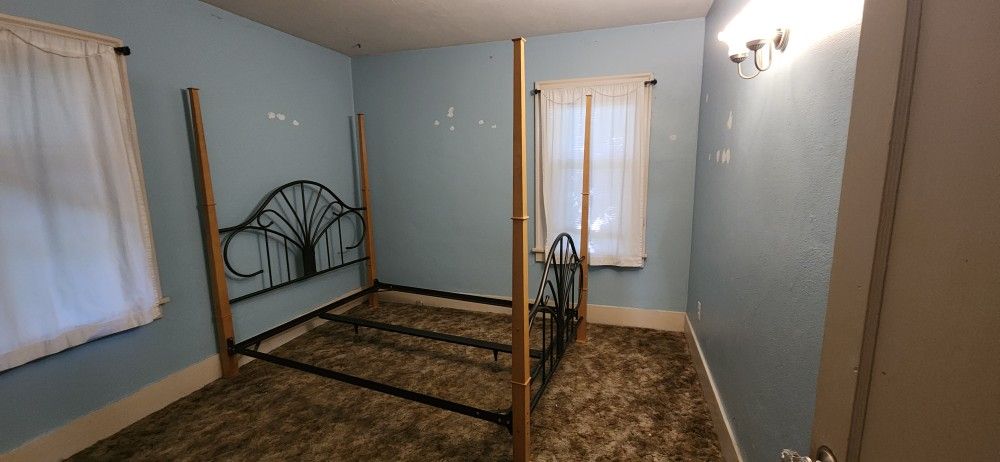 Queen bed frame, metal and wood. I've disassembled for easier pick up.
