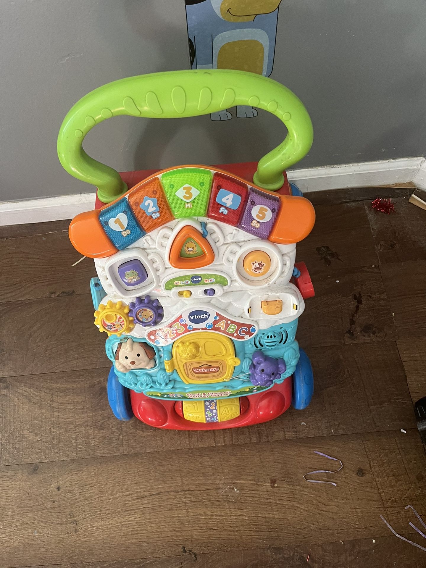 Lights up makes sounds baby uses to balance when learning to walk then can set and play with it