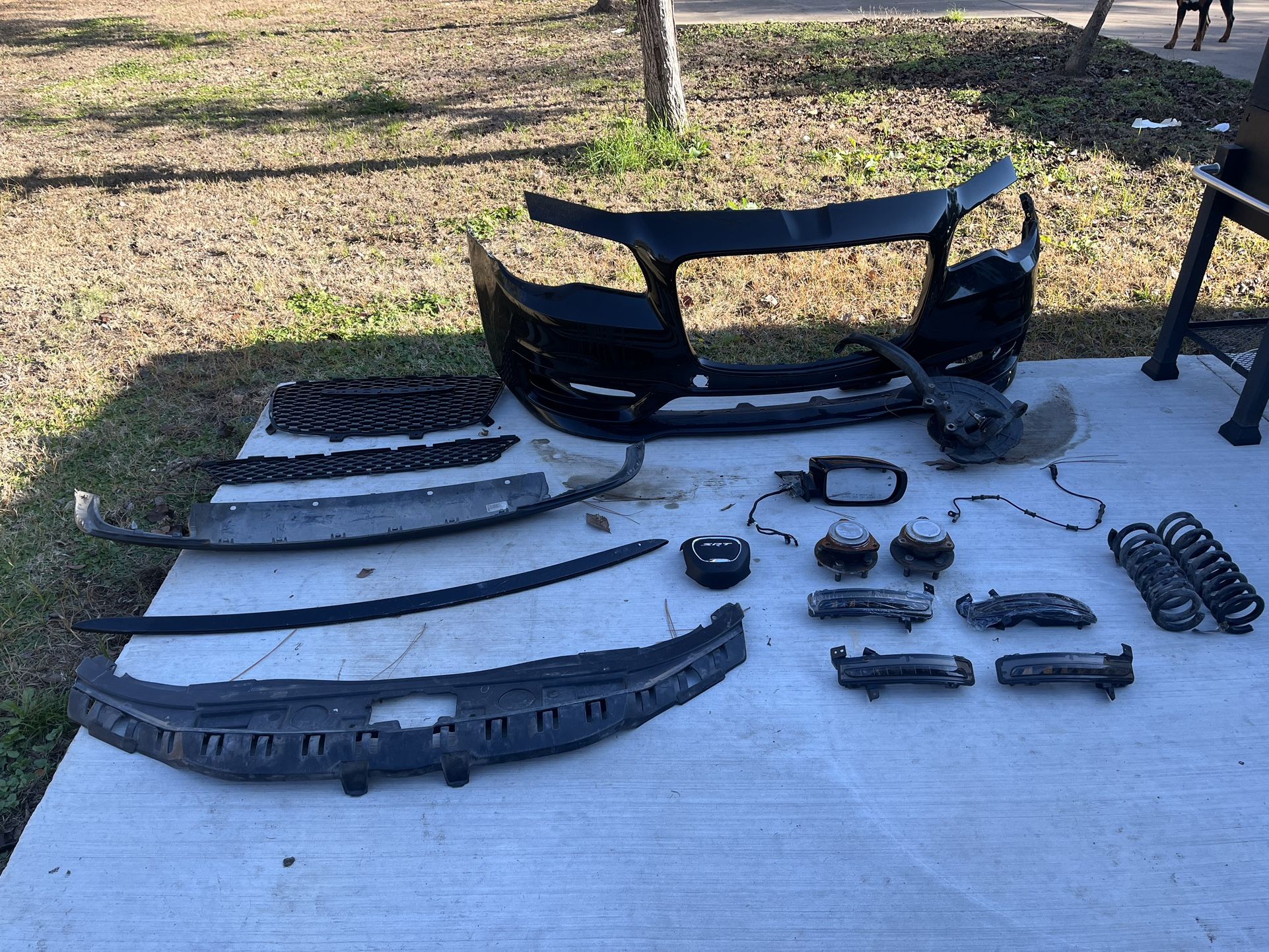 the top drls are brand new- chrysler 300- SOLD‼️ fig lights are on the bumper still-chrysler 300-SOLD‼️ the 2 grilles are brand new-chrysler 300 airbag cover is brand new- charger oem stock springs-charger scatpack wheel hub- charger 5.7 or chrysler 300 5.7 spindle-charger 5.7 or chrysler 5.7 mirror-chrysler 300 hood-chrysler 300 back driverside door-chrysler 300 OBO!