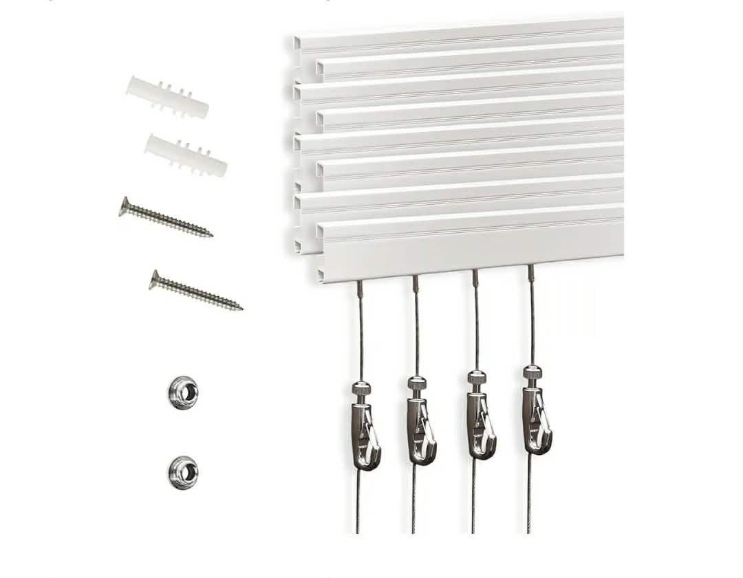 Picture Rail Hanging System ā 8 Pack Picture Hanging Kit Including 8 Pcs 24" Picture Rails, 8 Pcs 2M Picture Haning Wire Hooks ā Elegant Art Hanging System for Gallery, House, Decor Material: Metal Brand: NACETURE Color: Sliver Item Weight: 1.66 Kilograms Installation Type: Screw-In Fastener Type: Screw šØ CHARMING CREATIVE DISPLAY - Transform your space into an inspiring gallery with our rail picture hanging kit system with picture hangers, which is specially designed to help you display your artwork effortlessly, creating a stunning visual impact that enhances any room's aesthetic while allowing for a creative flair! šŖ DURABLE AND RELIABLE - Crafted from high-quality materials, the picture hanging wire kit is smooth, sturdy and durable enough to hold multiple frames securely. Each cable in our system can support up to 30 lbs without bending or warping so you can trust that your artwork will stay safe and secure! š ADJUSTABLE HOOKS AND CABLES - Once installed, the adjustable hooks and cables give you the freedom to reposition or swap out your artwork anytime, all without leaving unsightly holes in your walls. This picture rail hooks and wire kit is perfect for rotating seasonal decorations or showcasing new artwork! š¼ļø VERSATILE USAGE - Perfect for any setting, our picture frame hanging kit is ideal for hanging multiple frames, artwork, pictures, posters, and decor pieces in your living room, hallway, gallery, bedroom, office or any other space. Picture hanging kit no wall damage. Create an eye-catching display that reflects your personality and creativity! š ļø COMPLETE INSTALLATION KIT - The art hanging kit includes 8 white rails (24 inches long), 8 steel wires (2M long) with hooks, and 8 sets of screw accessories, along with step-by-step instructions for easy installation. Get your beautiful display up in no time! 2544