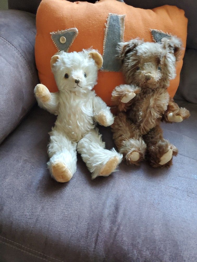 2 Teddy Bears over 60 years in my possession. Jointed and for their age good condition. Selling together for $30. Each 12".