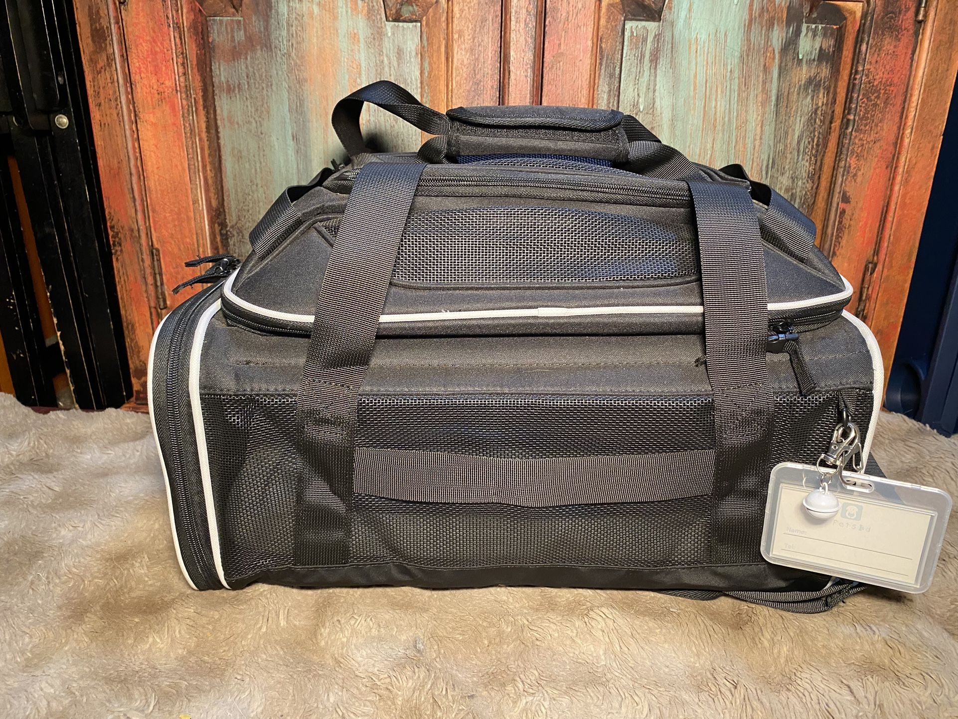 Petskd Top-Expandable Pet Carrier 18x12x9 Inches Southwest Airline Approved, Soft-Sided Carrier for Small Cats and Dogs with Locking Safety Zippers Very high quality soft sided travel carrier. In like new condition only used once. My 15 pound dog fit very well and loved this carrier. The zippers buckle closed so you do not need to worry about the zippers coming unzipped during travel. I will not be traveling anytime in the near future so looking to send this to a new home and get some closet space back. $45