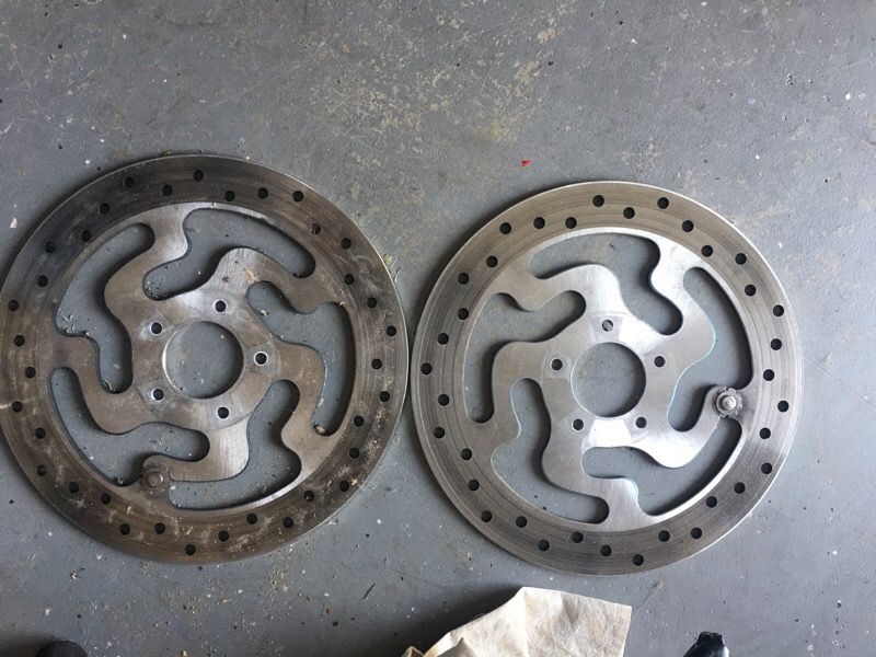 I️ have these 2 Front rotors that came off my 2013 street glide original parts. They are in good condition like new. I️ took them off my bike to have others put on.