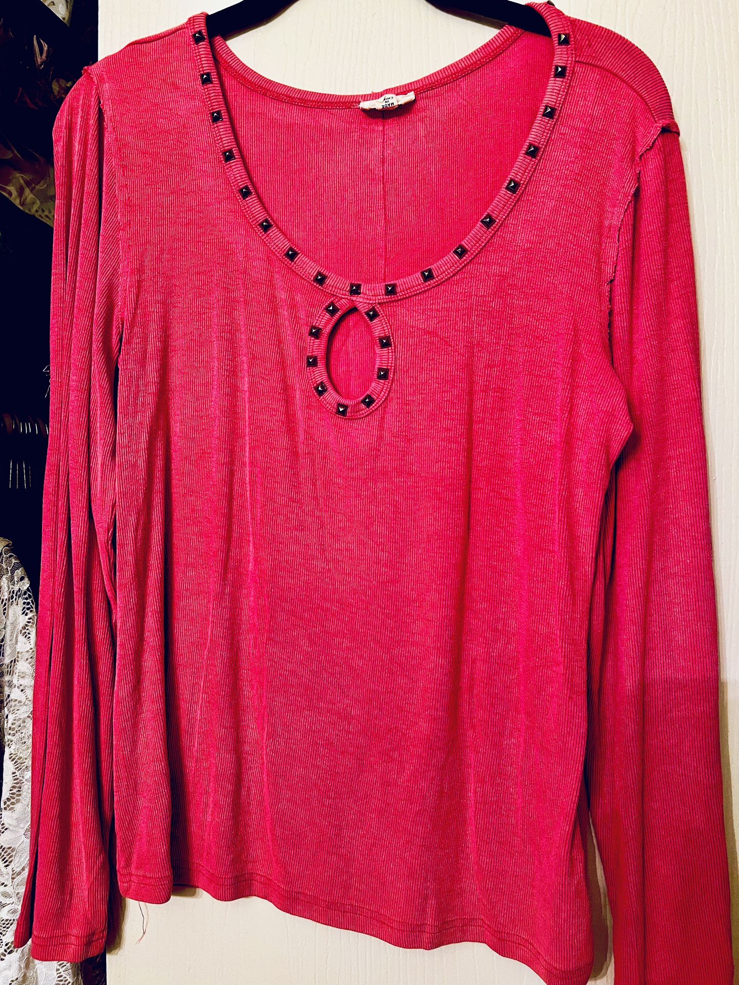 π POL Shirt With Keyhole Detail And Studs Detail Around Collar And Key Hole In Color Red Size L, never worn. Asking $1.00