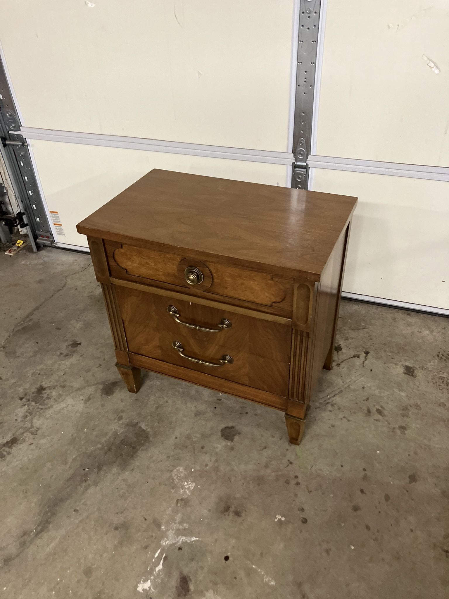 Very nice nightstand by Stanley, which is a quality maker of furniture for over 100 years. Has minor issues on top. three drawers work fine. Dimensions height 25 inches, depth 16 inches, width 20 inches. Cash only firm on price I live by the Tacoma Narrows Bridge for pick up.