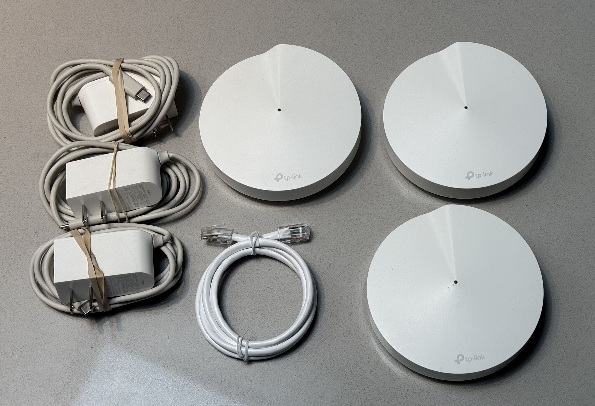 3 pack of WiFi access point routers to cover your entire home with fast internet. Easy install via app, plug and play. Install available for additional fee… https://offerup.com/redirect/?o=aHR0cHM6Ly9hLmNvL2QvNmNIdGlndA== If you're looking to ditch your traditional router extender setup for a whole Home Wi-Fi system, put the TP-Link Deco M5 Wi-Fi system on your short list PC mag said Better coverage than traditional Wi-Fi routers: Deco M5 uses 3 units working seamlessly to create a mesh network that can cover homes up to 5,500 square feet. No dead zone anymore Seamless and Stable Wi-Fi: Rather than Wi-Fi range extender that need multiple network names and passwords, Deco M5 allows you to enjoy seamless roaming throughout the house, with a single network name and password TP-Link unique Adaptive routing technology automatically chooses the fastest path for every device and allows for more flexible placement than a satellite system Secure Wi-Fi Mesh Network: Protect your network and connected devices with a free lifetime subscription to TP-Link HomeCare featuring Next-level Antivirus, Robust Parental Controls, and QoS Easy to setup: Download the TP-Link Deco app, plug in your system, and follow the instructions to get your new home network up and running in minutes. Works with Alexa as well Each Deco M5 has 2 Gigabit Ethernet ports(6 in total for a 3-pack) and supports Wired Ethernet Backhaul for better speeds. Any of them can work as a Wi-Fi Router. Works with all internet service providers, such as AT&T, Verizon, Xfinity, Spectrum, RCN, Cox, CenturyLink, Frontier, etc.( a modem is required for most internet service providers)