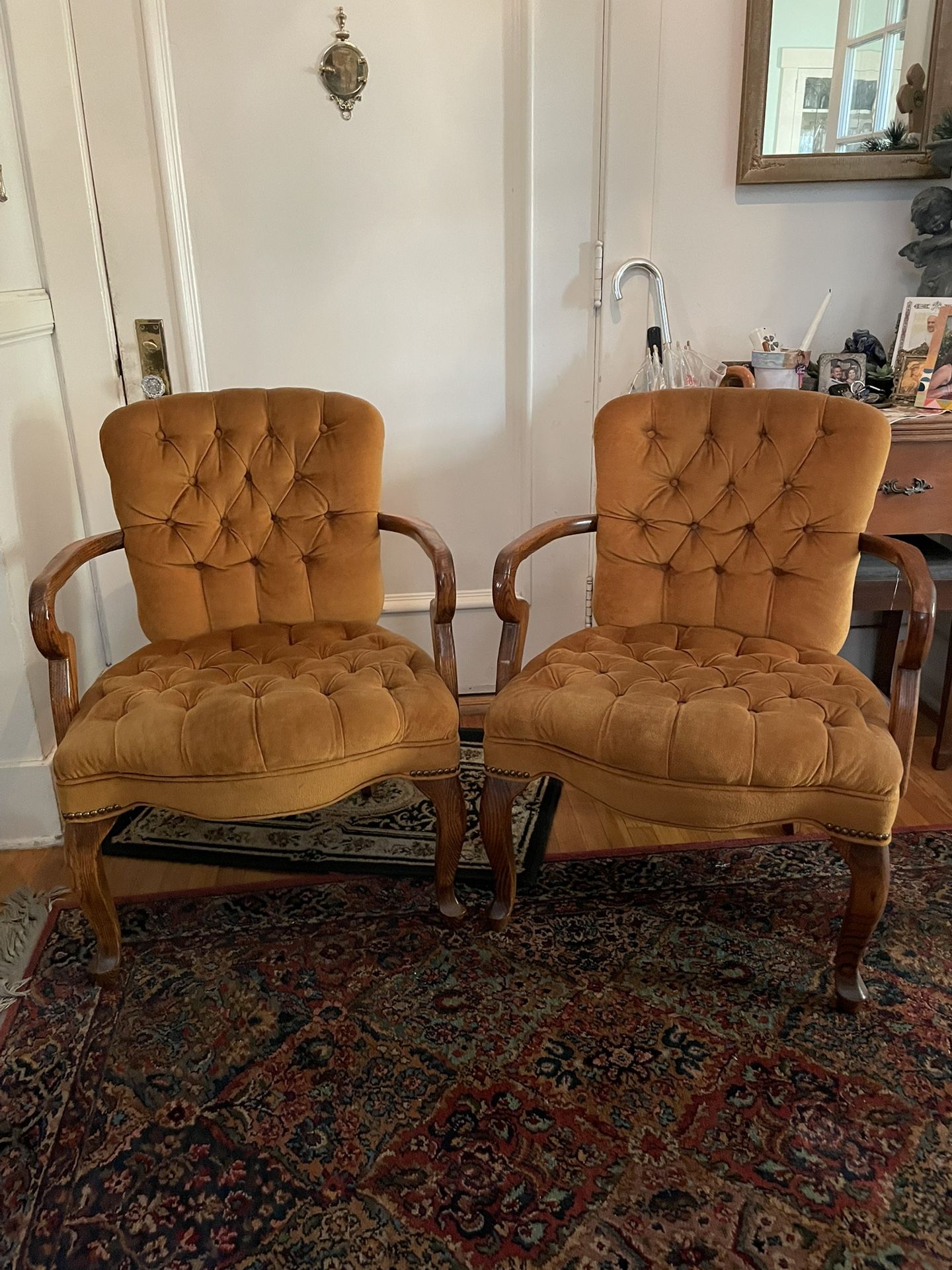 Vintage Gold Diamond Tufted Back & Seat Chairs