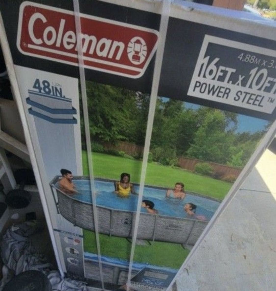 Brand New 16x10x48 swimming pool includes Filter pump and ladder. Can deliver if nearby. $700 Description & Specifications Have the summer of your (and your kids’) dreams with an above ground pool right in your own backyard! Durable Construction The Coleman® Power Steel™ Above Ground Pool is easy to set up and built to last. The durable, corrosion-resistant steel frame is equipped with our Seal & Lock System™ for a sturdy and secure pipe connection. The Tritech™ liner is made of durable material that is reinforced for strength and puncture-resistance. Plus, the outside of the liner is printed with a realistic stone pattern to seamlessly fit into your beautiful backyard. Additional Features This above ground pool set also comes stocked with a filter pump and a ladder. Have fun in the sun and relax the day away with this Power Steel Pool Set! Size: 16 ft. x 10 ft. x 48 in. (4.88 m x 3.05 m x 1.22 m) Water Capacity (90%): 3,612 gal. (13,672 L) Tritech™ enhanced 3-ply liner is durable and puncture-resistant Corrosion resistant steel frame is held together with our Seal & Lock System™ to provide remarkable strength and connection 1,000 gal. (3,785 L) filter pump included Easy, no-tool setup and takedown process Contents: 1 pool, 1 filter pump (compatible with Type III cartridge), 1 ladder