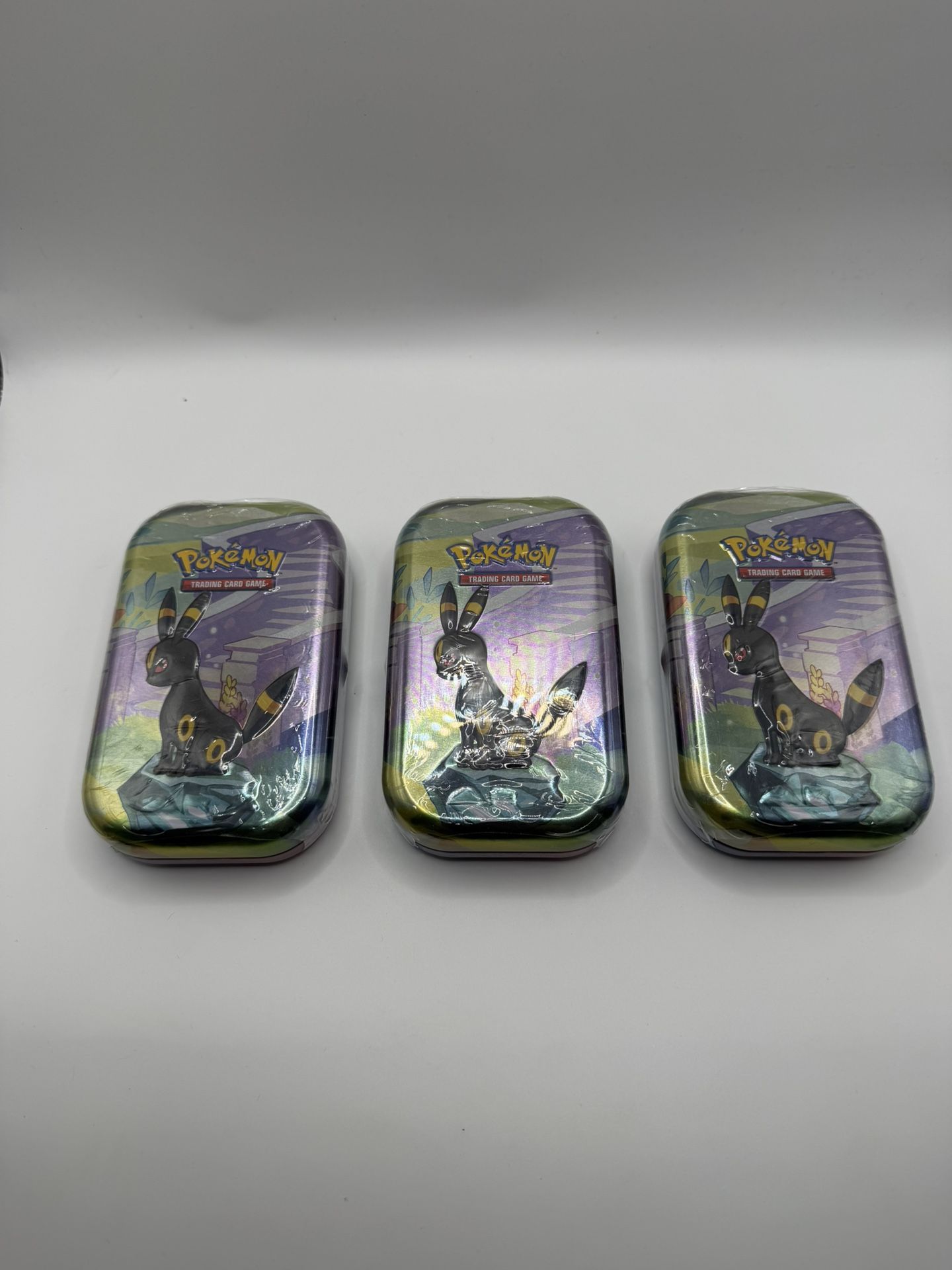 4 mega Latias boxes 25 each or all 4 for 80 11 phantasmal flames sleeved booster packs 7 each or all for 65 10 destined rivals sleeved packs 8 each 3 prismatic evolution tins 20 each or all 3 for 50