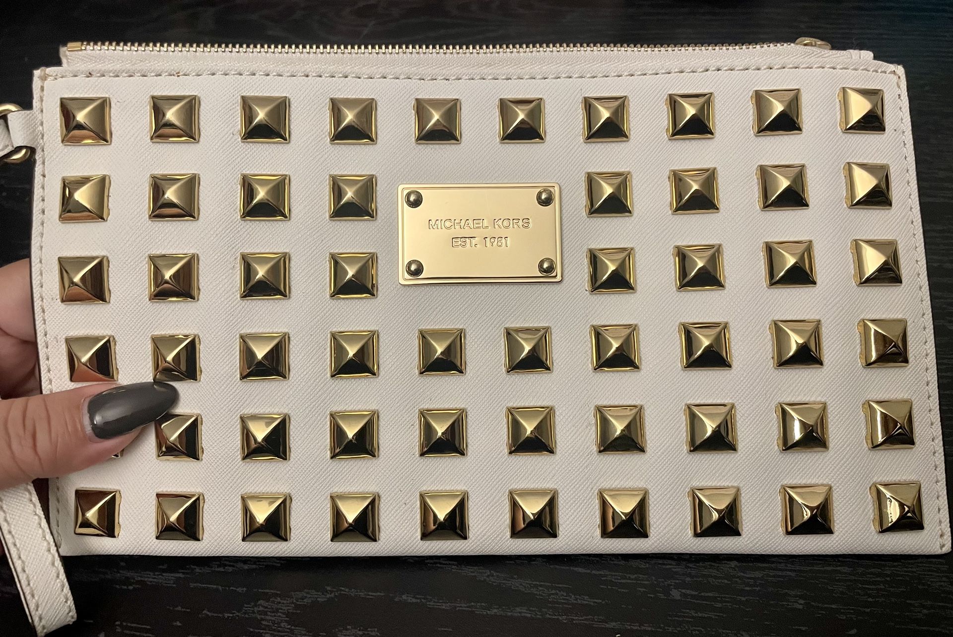 Michael Kors Gold Studded White XL Wristlet Clutch