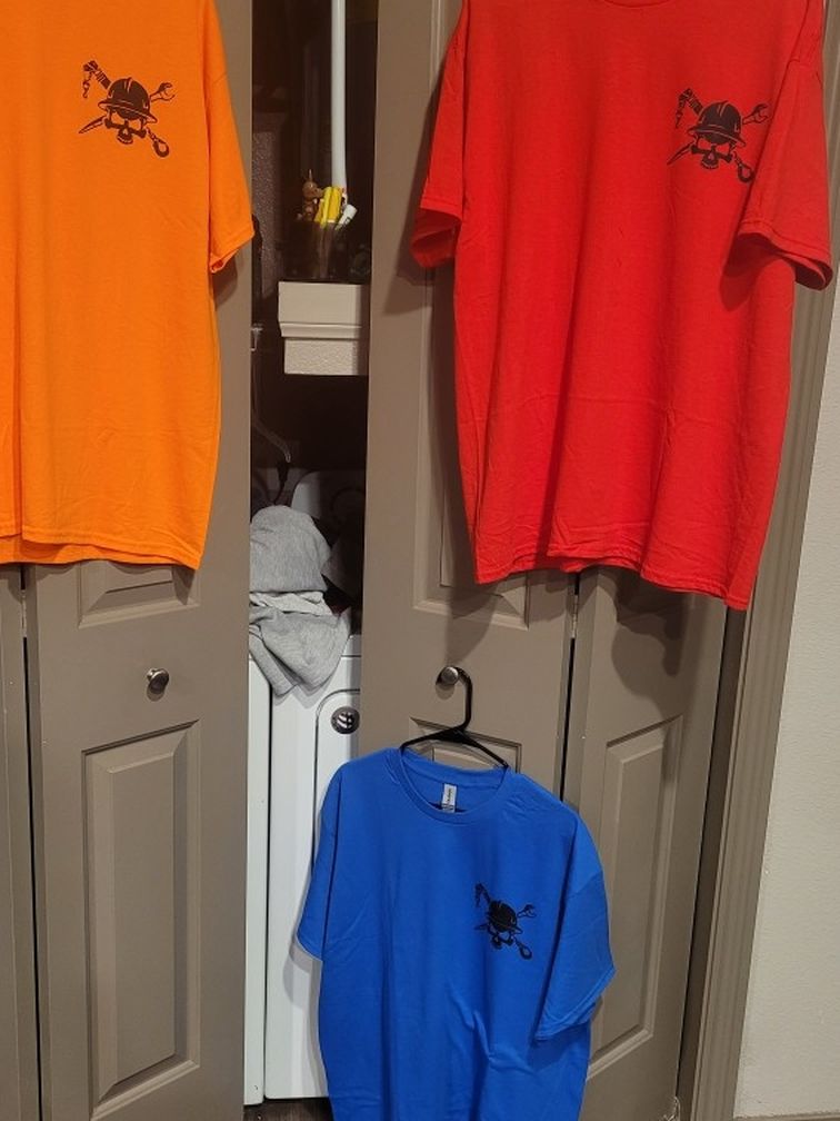 T shirts 20 bucks each. Can do custom logo for your business or event
