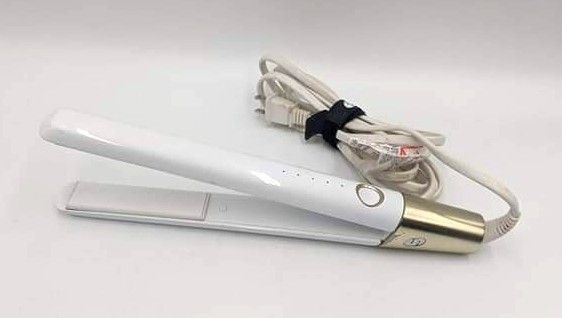This is a T3 SinglePass LUXE Hair Straightening & Styling Iron. The color is white and gold. Cosmetic condition 9/10. Comes without box. Works totally well and is a great collection to own!