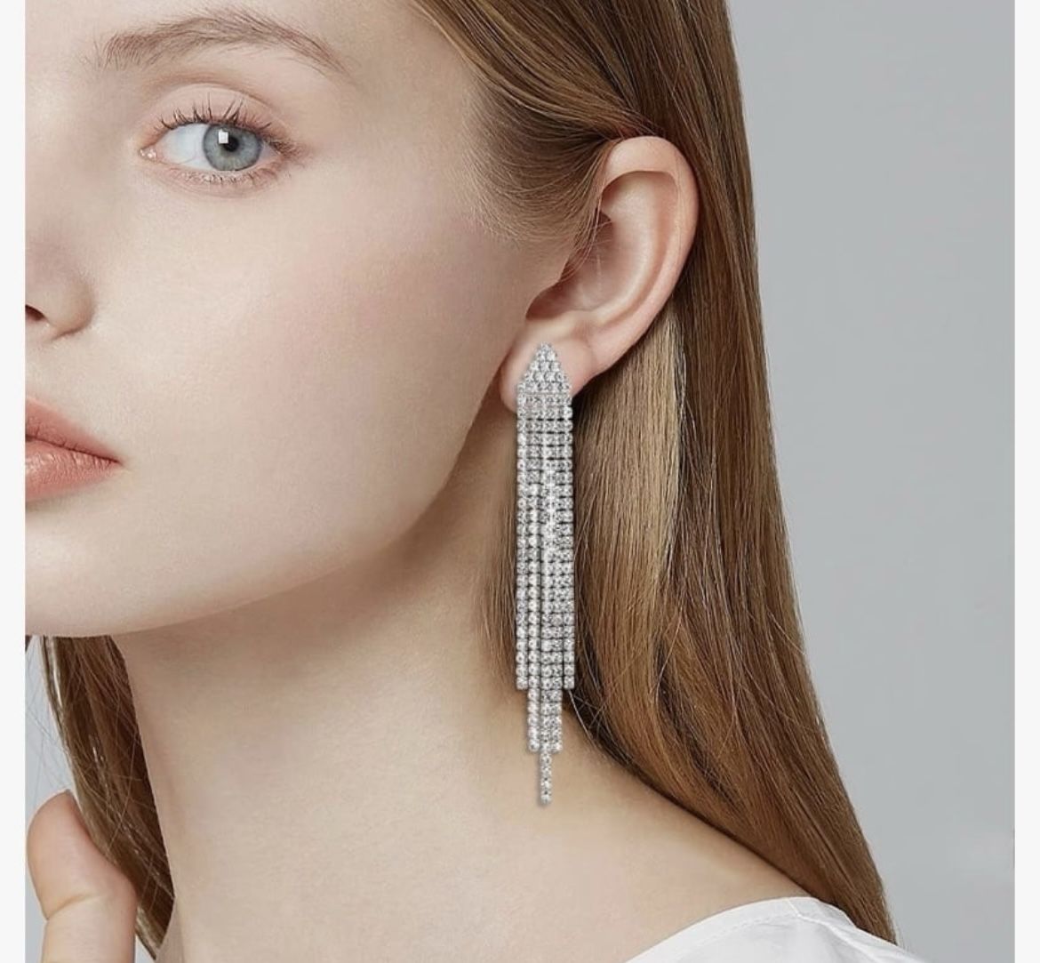 Silver clip on Triangle Rhinestone Chandelier Dangle Earrings. New Pick up or shipping only