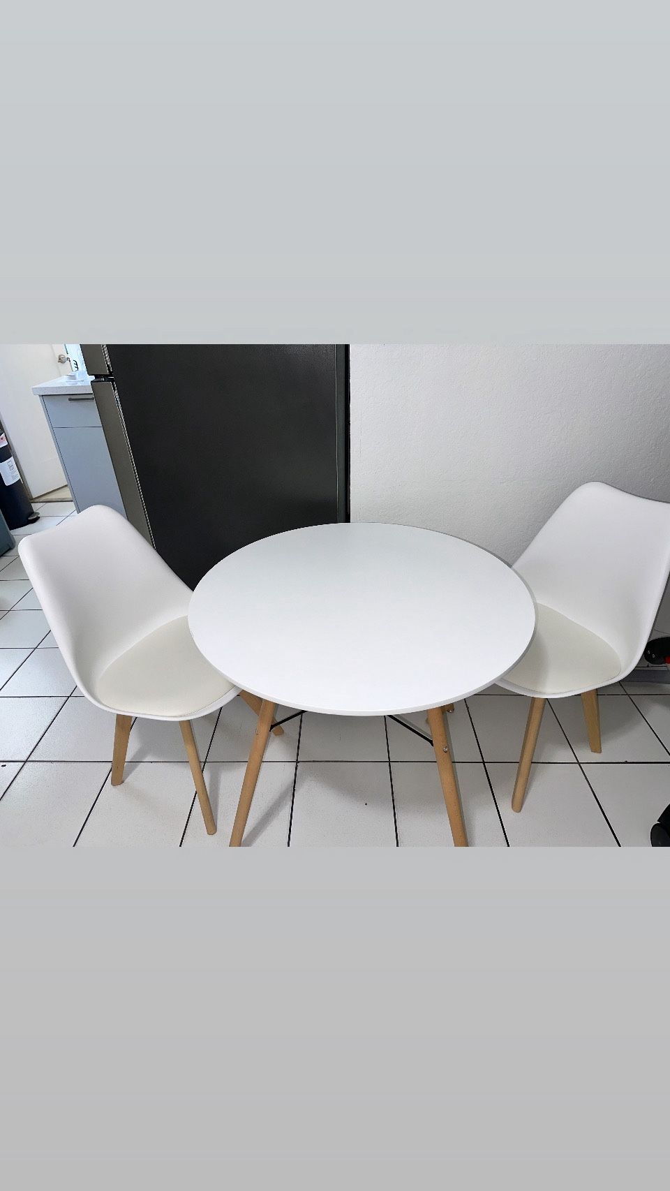 White Round Dining Table 32" Modern Pedestal Small Circle Room Table Leisure Tea Coffee Kitchen Table (White) (2 matching chairs included) (new barely used and in really good condition)