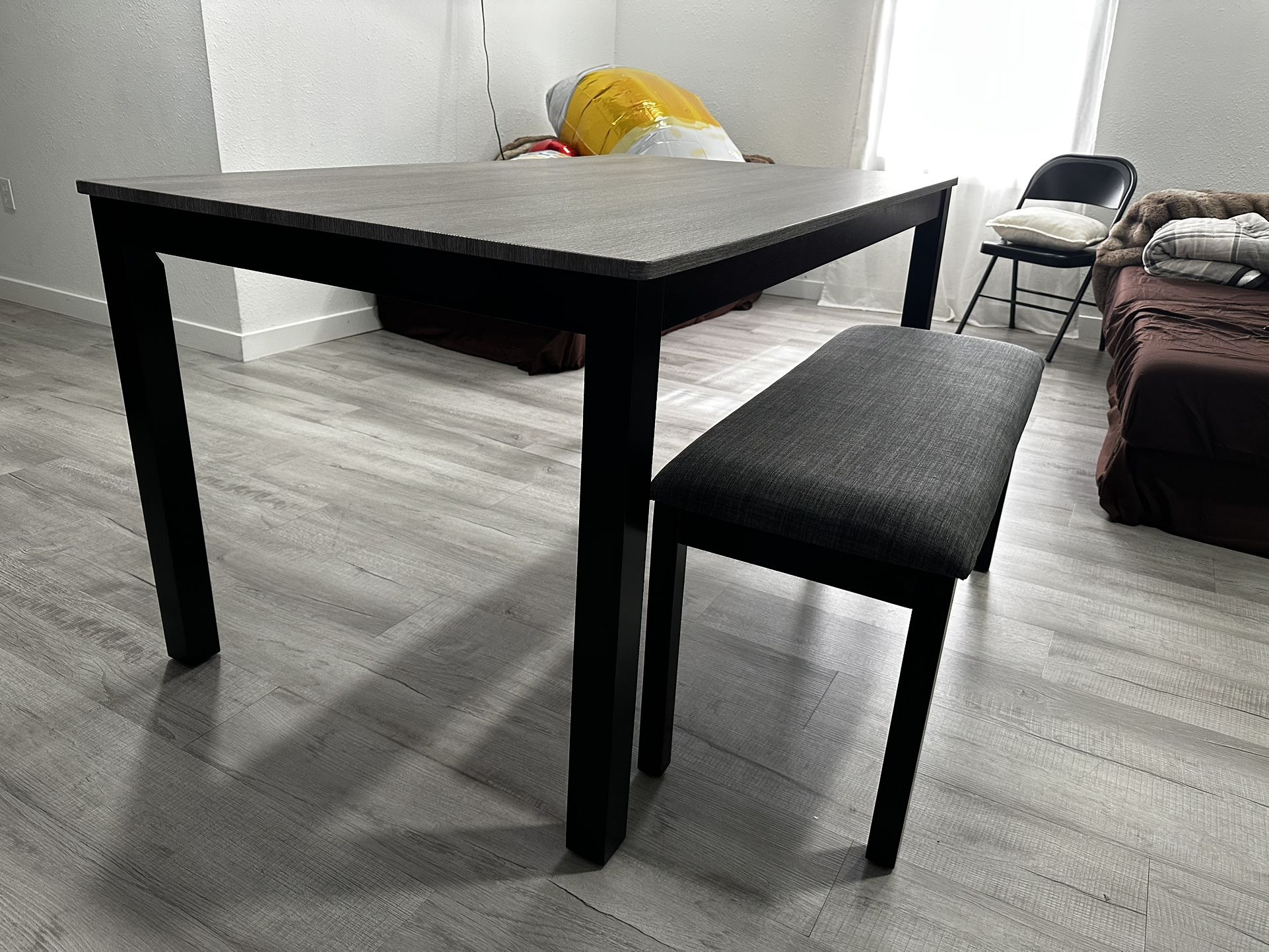 Gray wood dining table with matching bench. Very good condition, barely used. • Table + bench only (no chairs) • Sturdy and modern design • Pickup only • Located in Copperas Cove • Can help disassemble